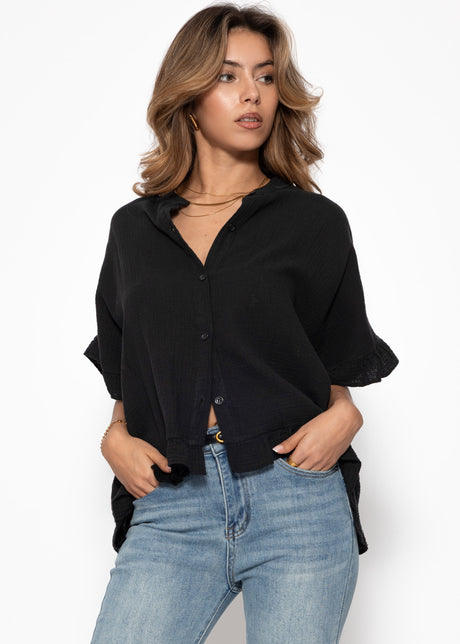 54,95€Grundpreis /Nicht verfügbarMusselin Bluse mit Rüschensaum - schwarz