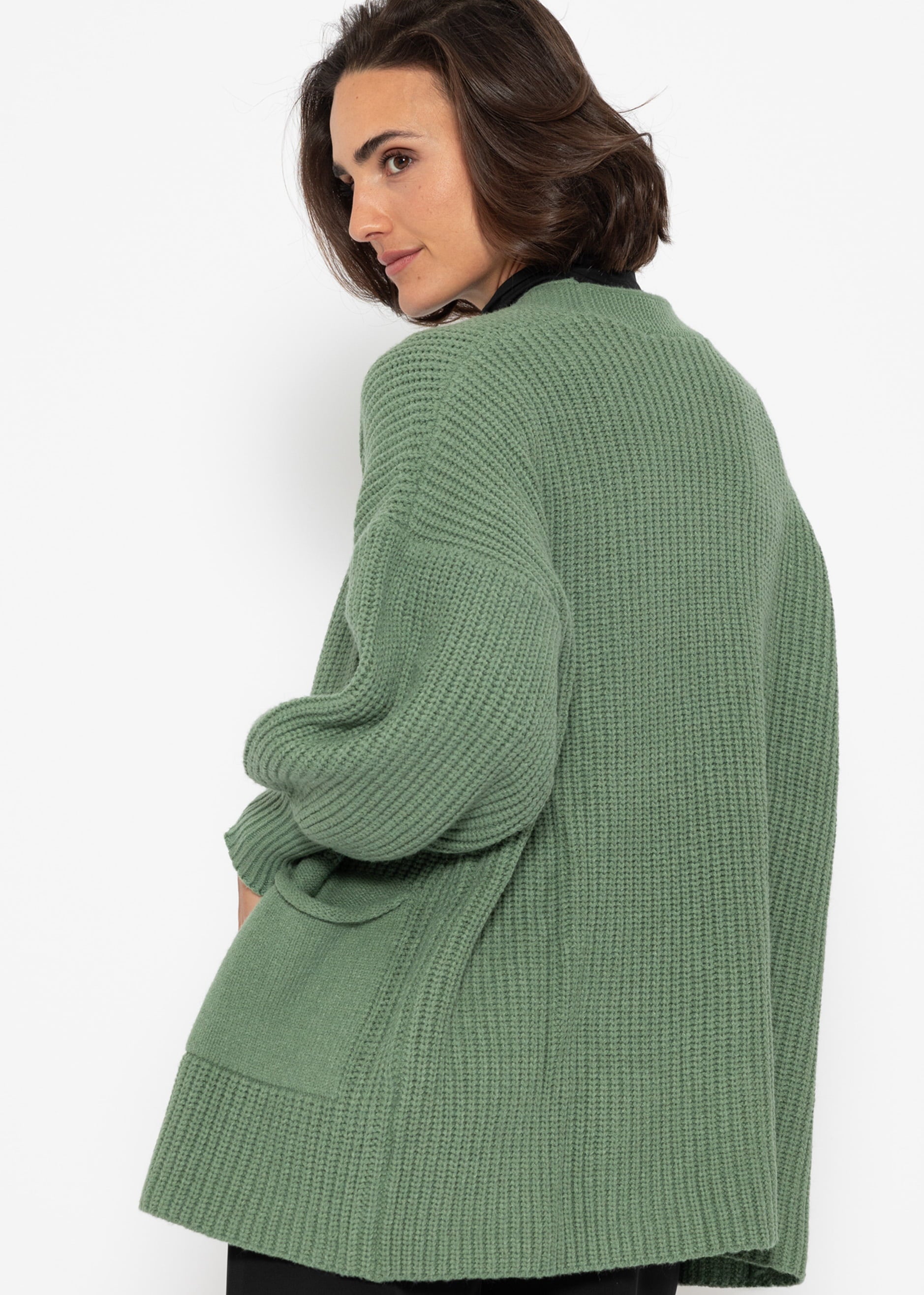 Dieser Cardigan vermittelt sofort ein Gefühl der Sinnlichkeit. Das Modell kommt in einer modernen Oversized-Passform, mit überschnittenen Schultern und gerippten Ärmel- und Saumabschluss. Die offene Silhouette erzeugt eine schmeichelhafte Linie und ermöglicht eine mühelose Schichtung über unterschiedliche Outfits. Aufgesetzte Taschen verleihen einen praktischen, sportlichen Look. Der Cardigan wurde aus super weichem Strick gefertigt, der dich gemütlich durch kühlere Tage begleitet und stellt das perfekte It-Piece für ein cooles Outfit dar.