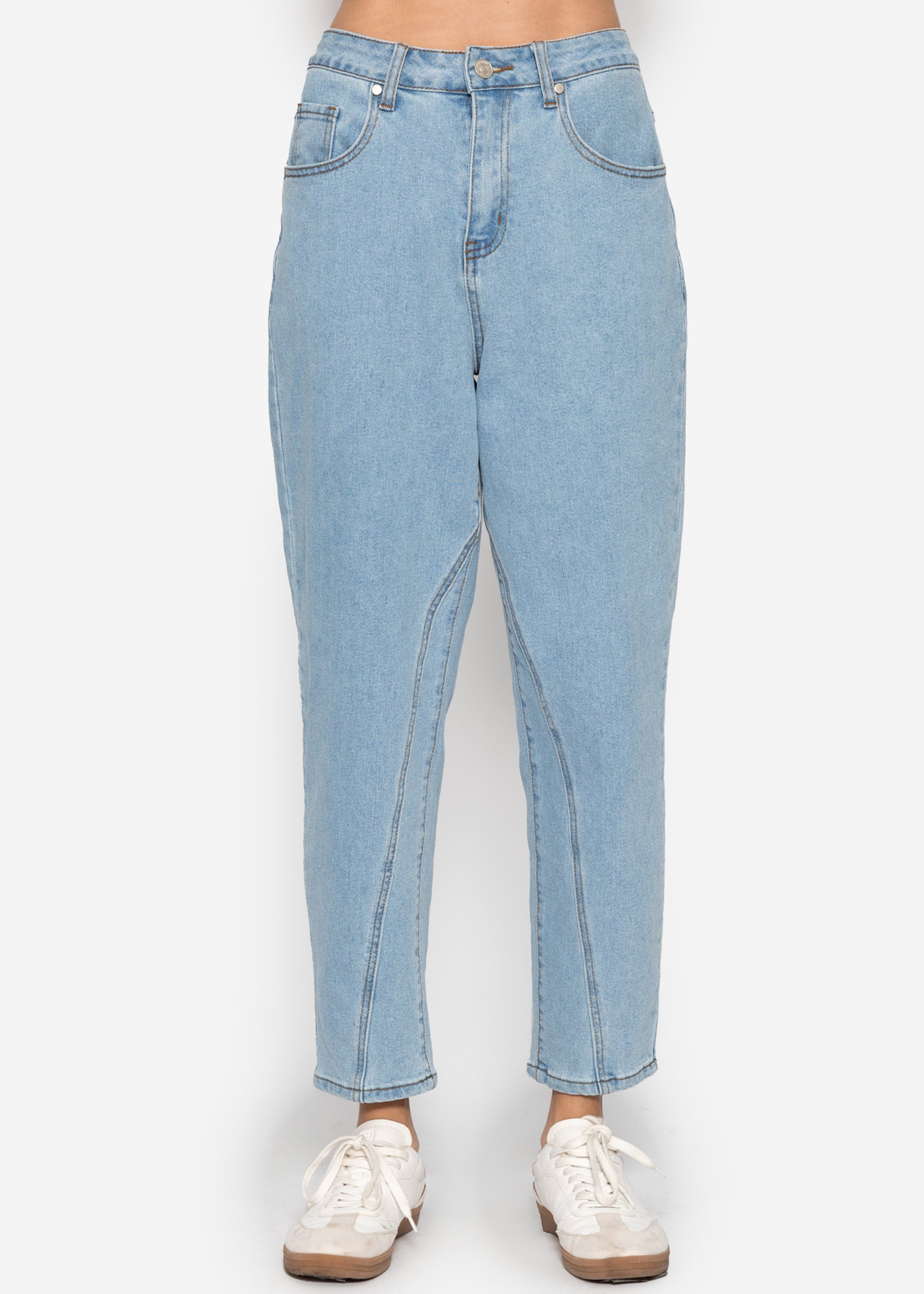 Diese Jeans verleiht dem klassischen Denim-Look durch ihre markanten, diagonal verlaufenden Ziernähte auf der Vorderseite ein modernes Update. Der hohe Bund betont die Taille und sorgt in Kombination mit dem leicht zulaufenden Bein für eine schmeichelhafte Passform. Die aus hochwertigem Baumwolldenim gefertigte Hose überzeugt mit einer klaren Silhouette und einem zeitlosen Stil. Typische Details wie der 5-Pocket-Stil, Gürtelschlaufen, ein Knopf und ein Reißverschluss runden das Design ab. Ob lässig mit Sneakern oder schick mit Bluse und Loafern kombiniert – diese Jeans ist ein vielseitiger Allrounder mit modischem Twist.
