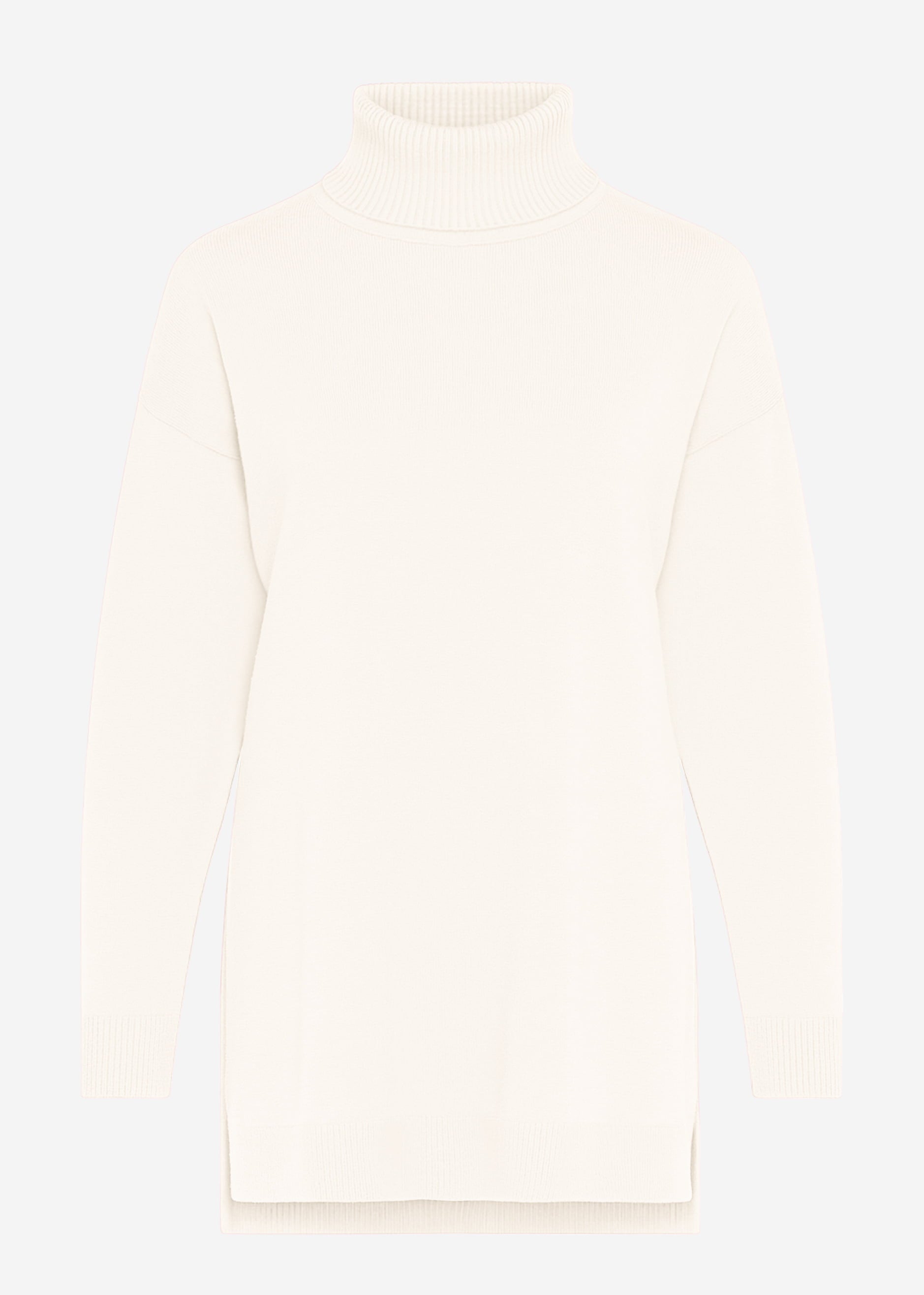 Oversize Rollkragenpullover mit langen Seitenschlitzen - offwhite