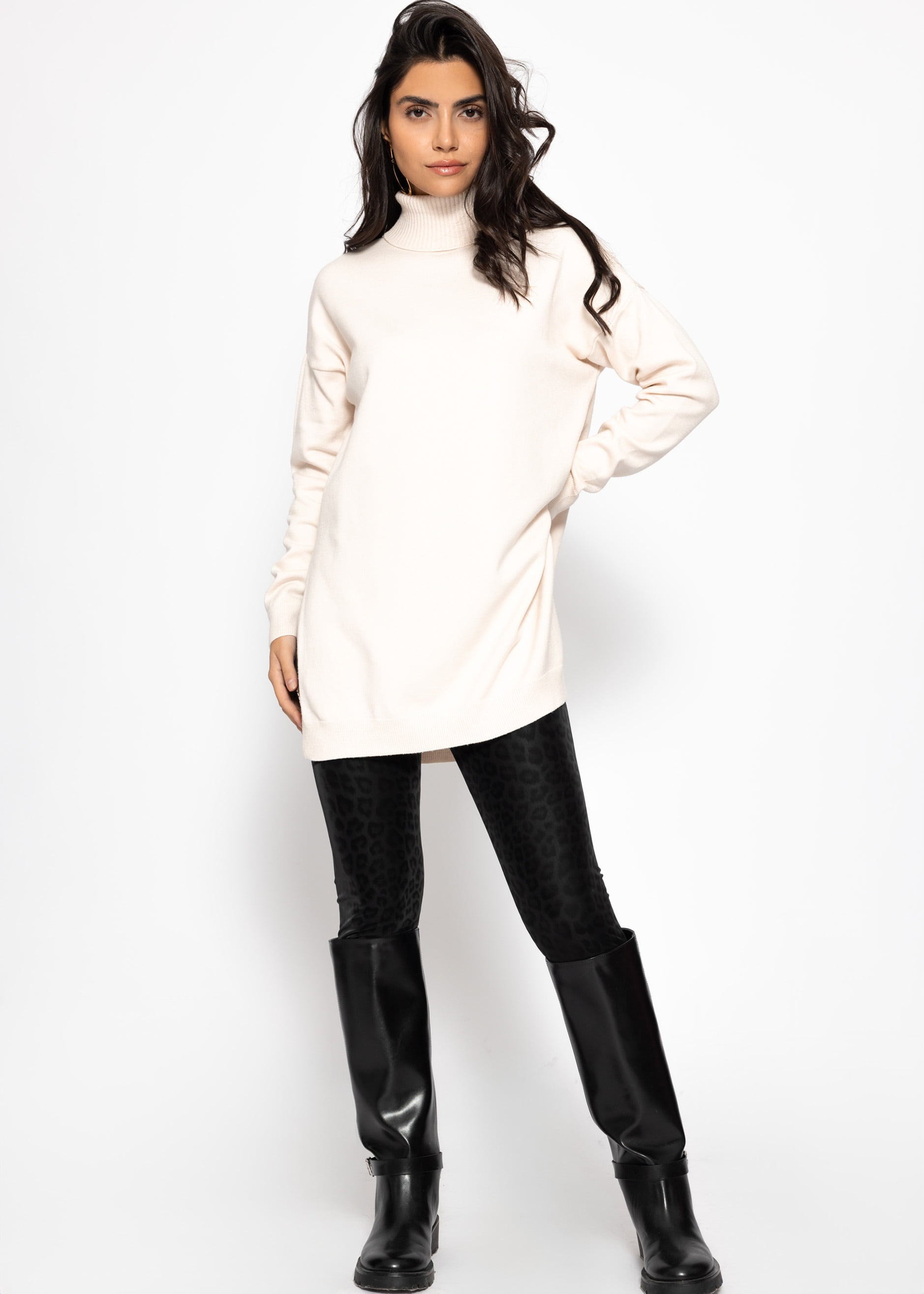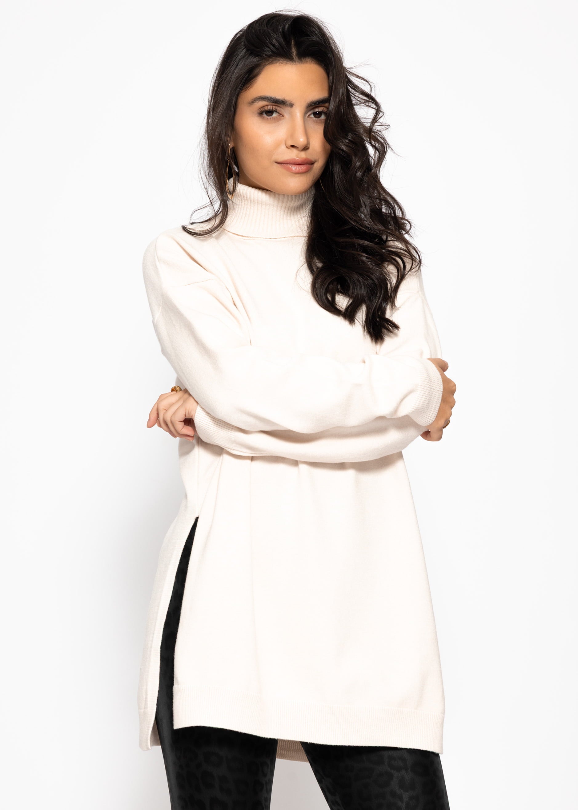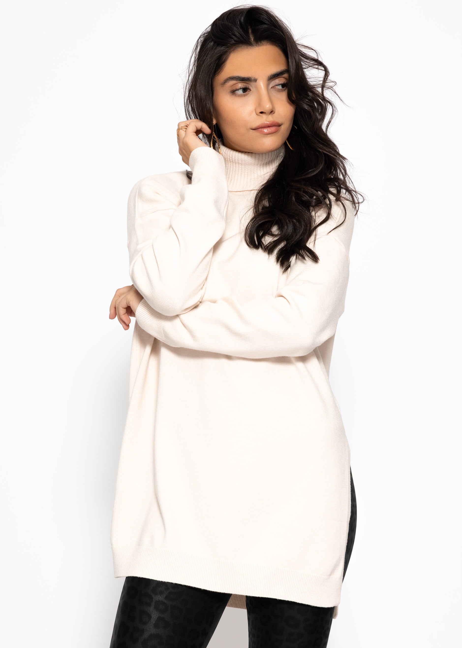 Oversize Rollkragenpullover mit langen Seitenschlitzen in Offwhite