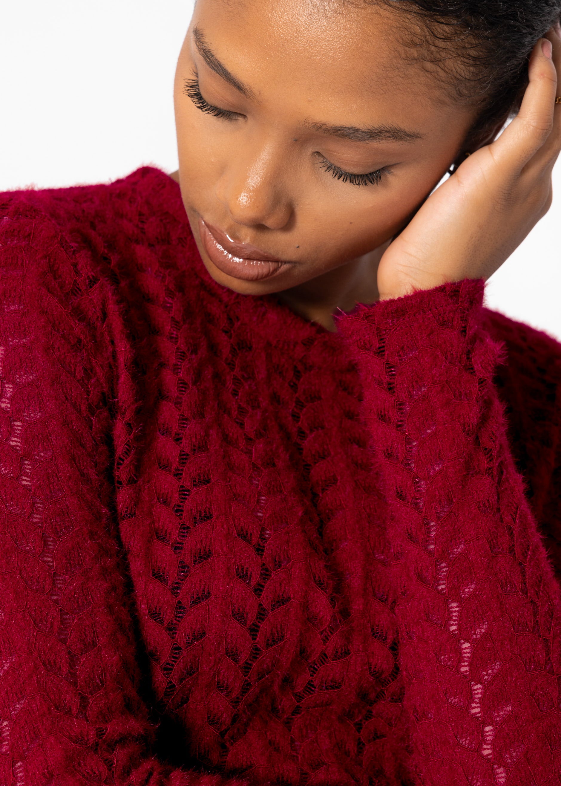 Pullover in extravaganter, weicher Spitze - dunkelrot