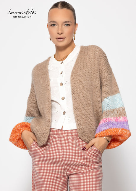 49,99€69,95€Grundpreis /Nicht verfügbarCardigan mit bunten Statement-Ärmeln - beige