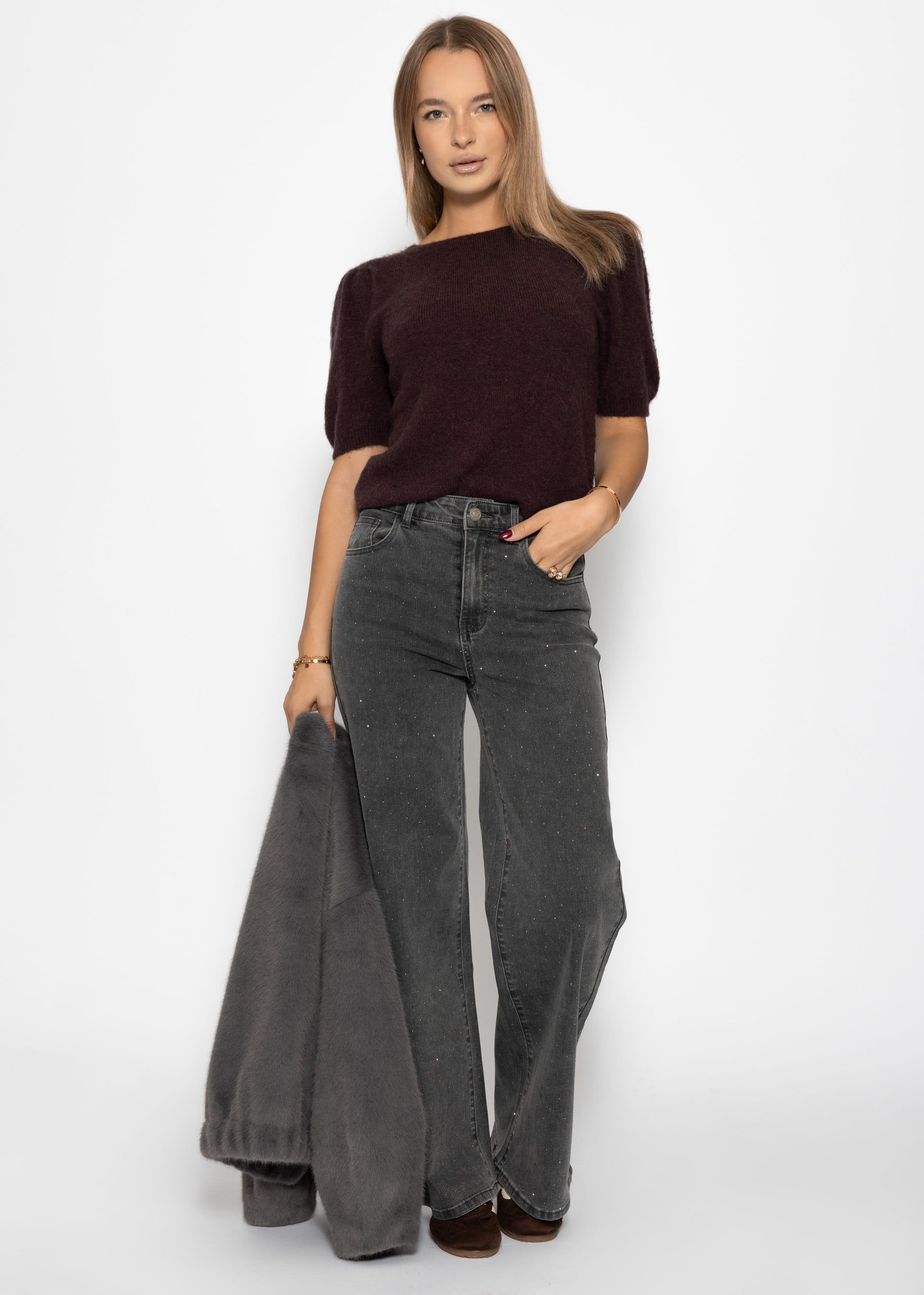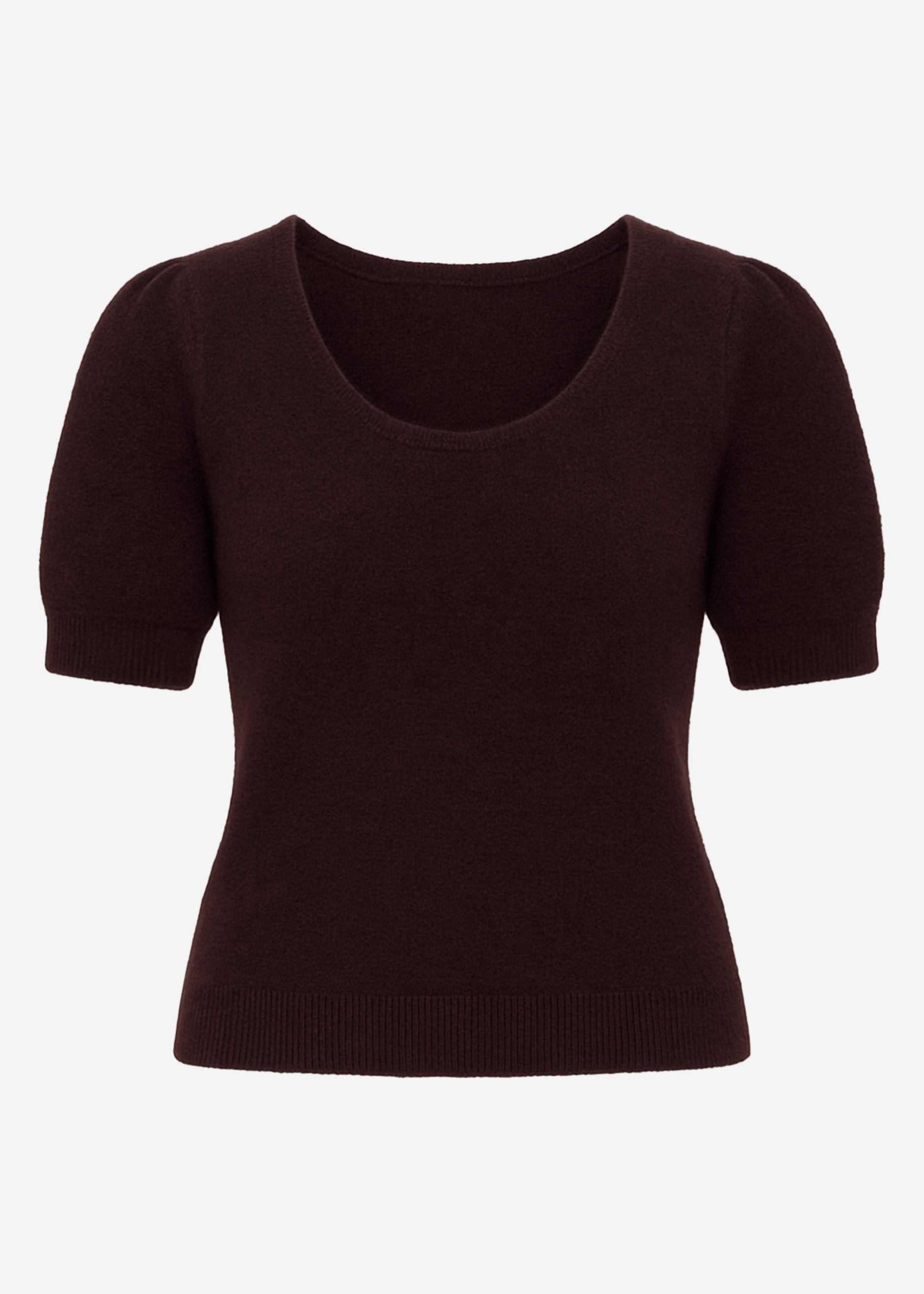 Strickoberteil mit Puffärmeln - aubergine-braun