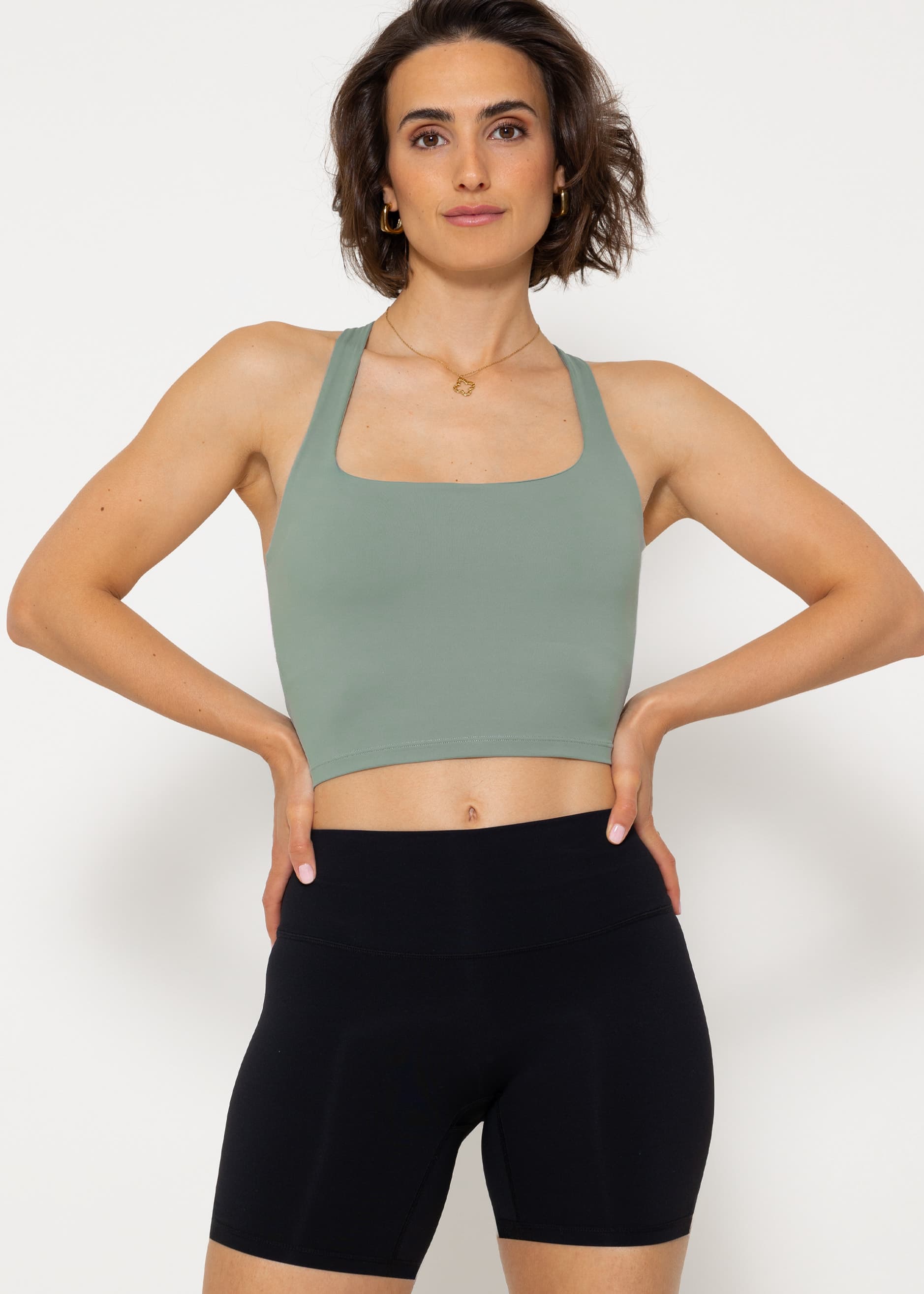 This stylish sports bra is the perfect companion for any sporting activity. Made from breathable, sweat-wicking material, it offers outstanding comfort and optimum support. The removable cups allow for individual adjustment, while the underbust band provides additional support and stability without cutting in. The underwired design allows maximum freedom of movement and prevents uncomfortable pressure points and skin irritation, so that you feel completely comfortable even during long and intensive training sessions. The unique, wide cross straps at the back not only give the bra a modern and sporty look, but also provide additional stability and even pressure distribution.