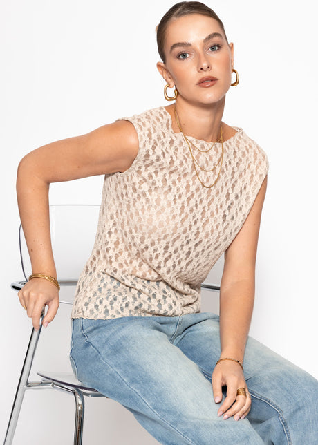 Oversized sweater with round neckline - taupe