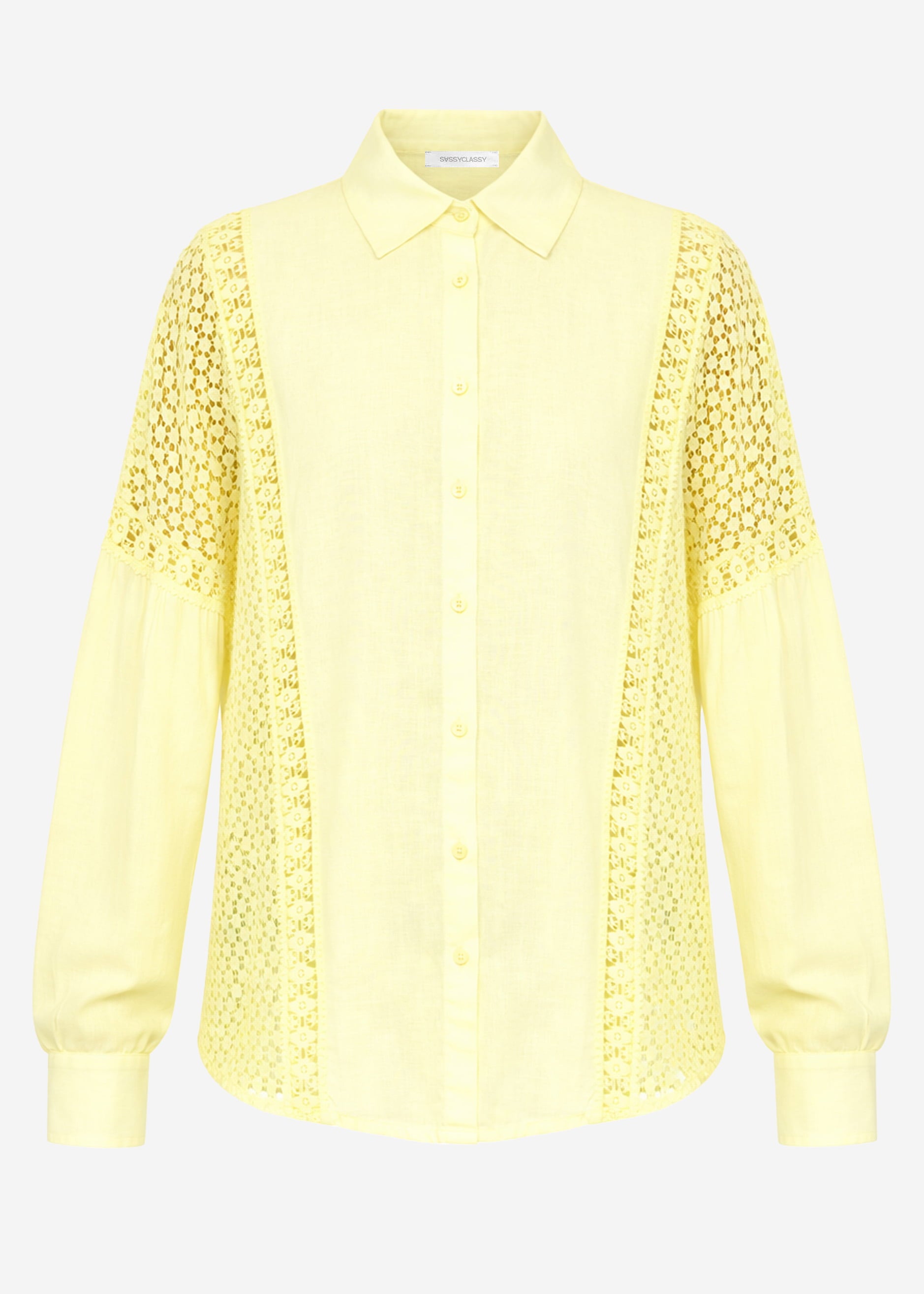 This charming blouse exudes feminine ease and inspires with filigree top inserts that give her a romantic note. The flowing oversize is gently playing around the silhouette, while the airy sleeves with elastic cuffs ensure playful dynamics. The high -quality material combination made of linen and viscose creates a comfortable fit. The combination of button placket and classic shirt collar gives the blouse a timeless elegance that can be easily integrated into a wide variety of looks. Whether for jeans for a casual everyday look or fabric trousers for a stylish appearance - this model relies on a harmonious balance between lightness and sophistication.