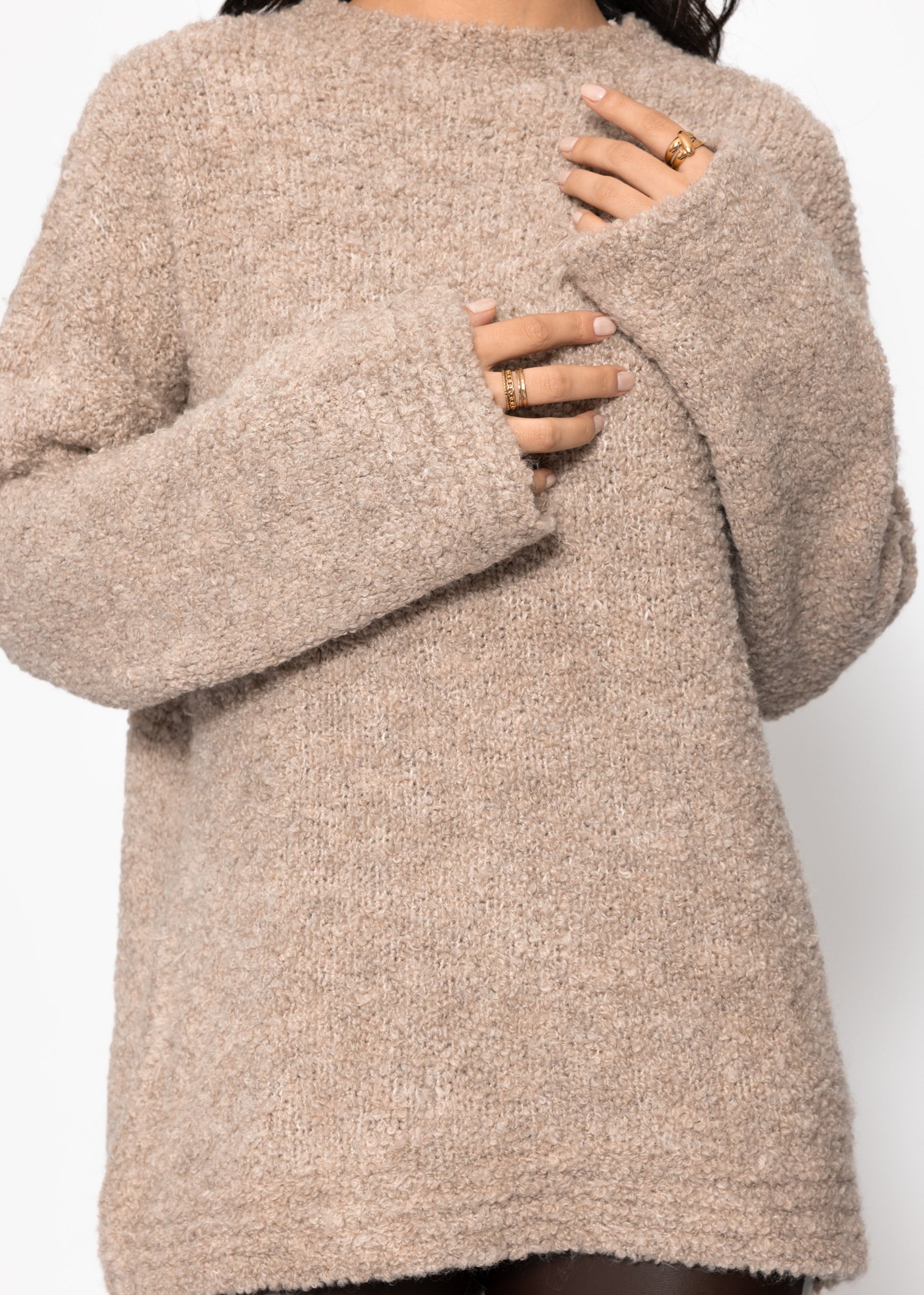 Co-creation jennifer_abigail x SASSYCLASSY: Bouclé sweater with round neckline in greige