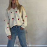 Cardigan with red hearts in off-white