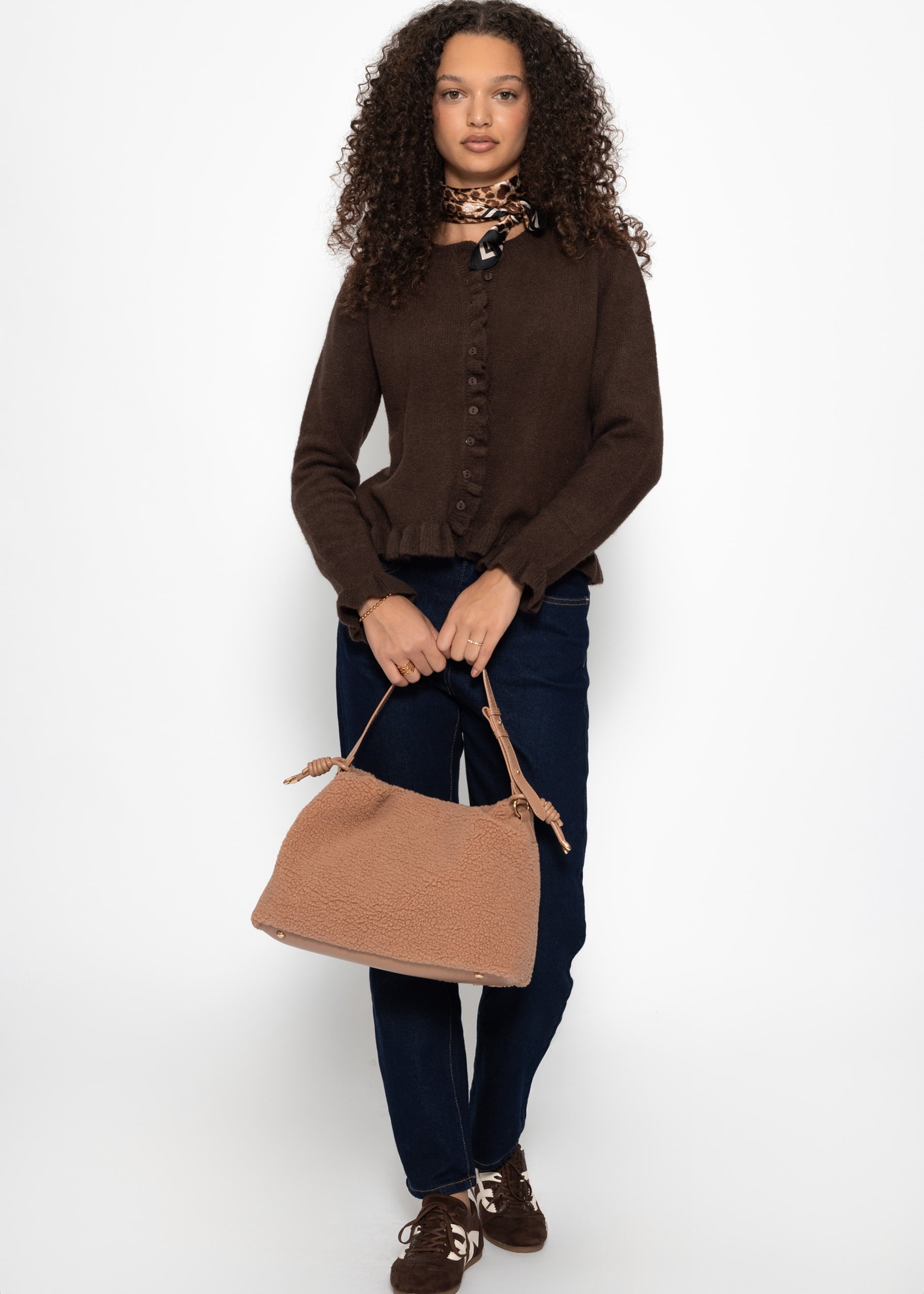 Cardigan with ruffles in dark brown