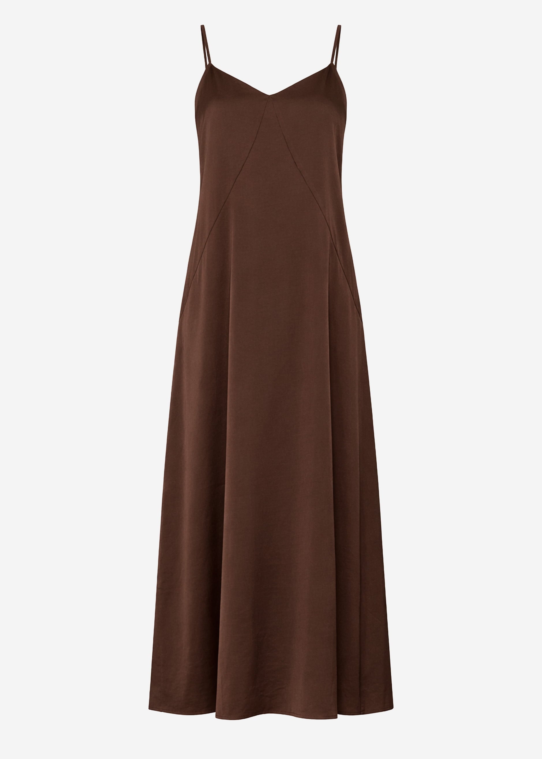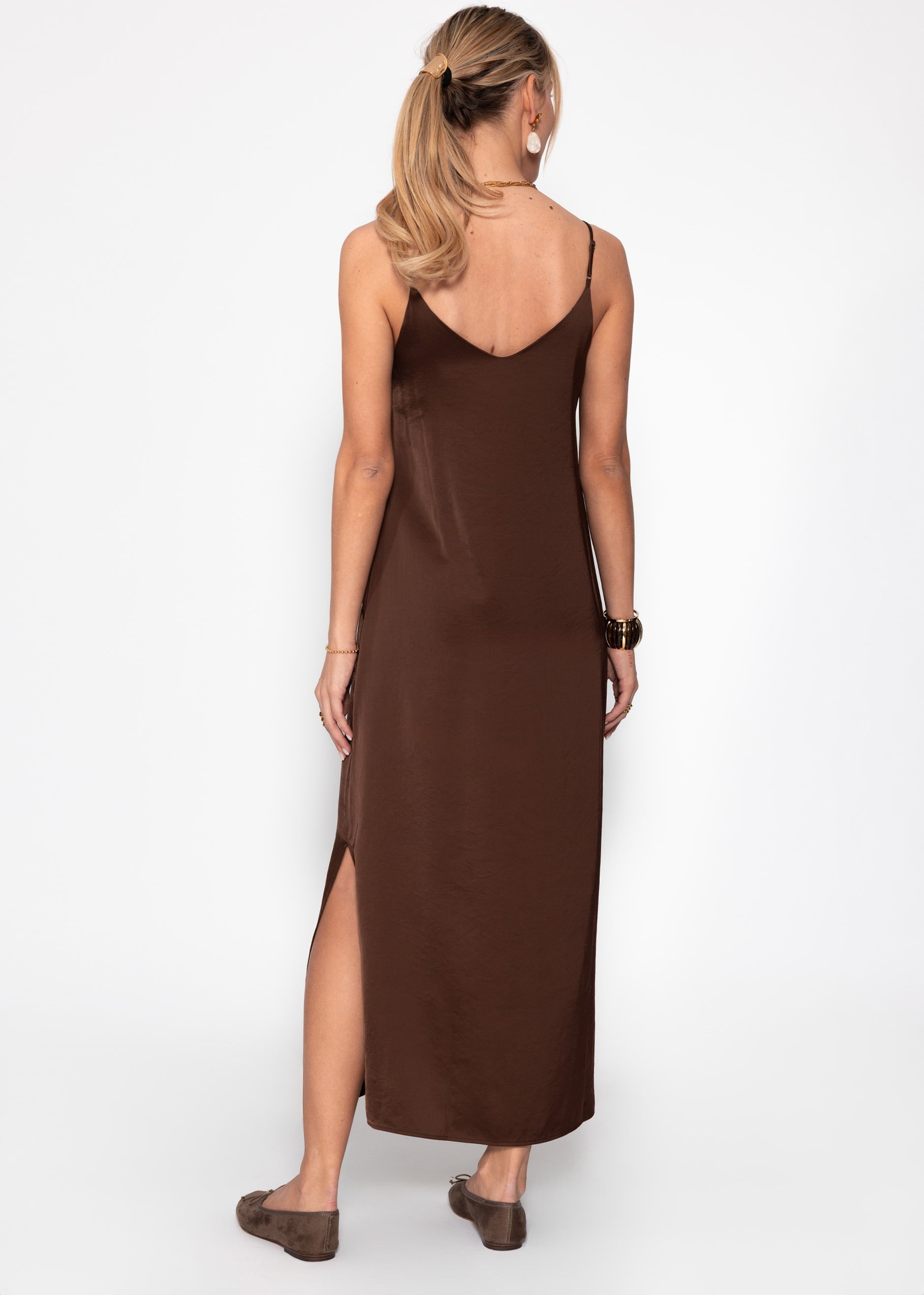 Elegance meets cool design: This long satin dress brings pure femininity into your look with a light crinkle look with a light crinkle look. The diagonal seam guidance in the front flatters the figure and sets subtle accents. Adjustable carriers ensure a perfect fit. The V-neck and the side slit bring sophistication into play.