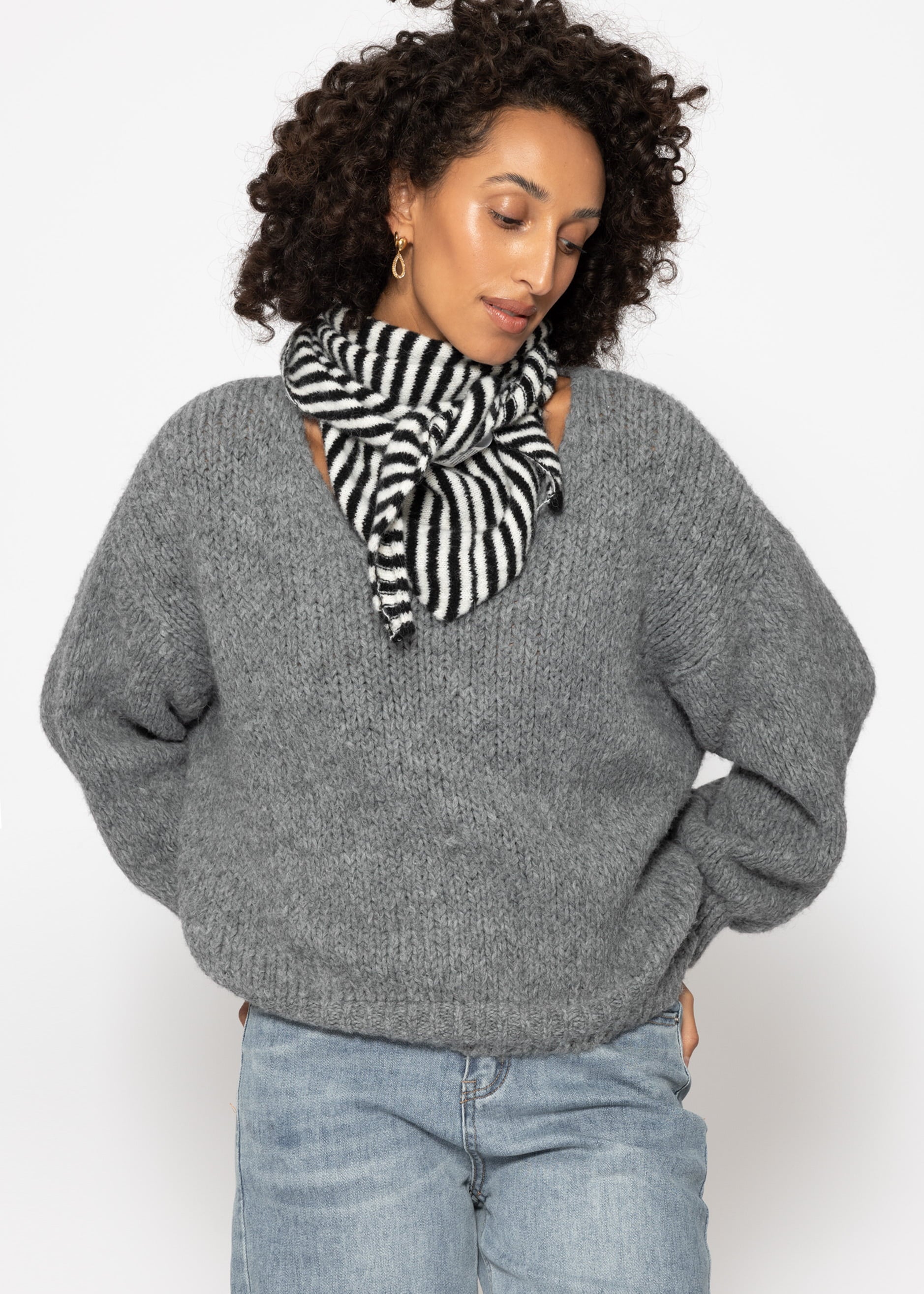 Gestreifter Dreiecksschal - schwarz-offwhite