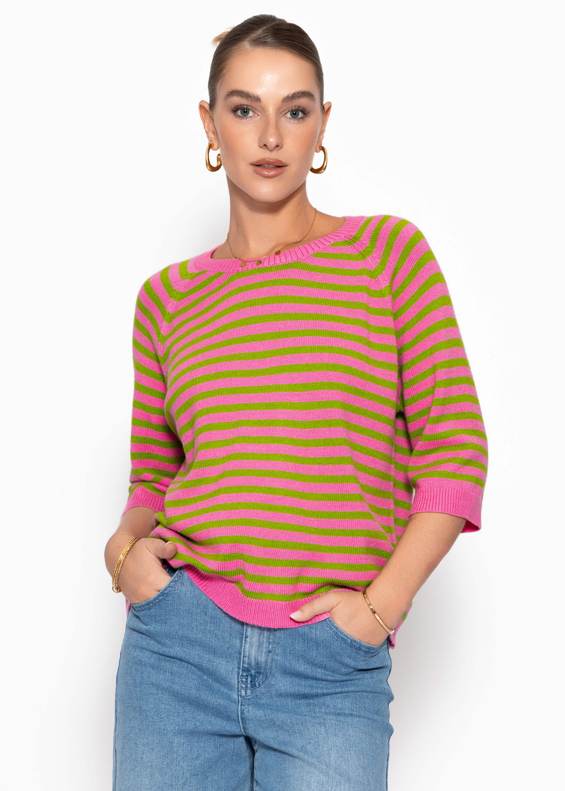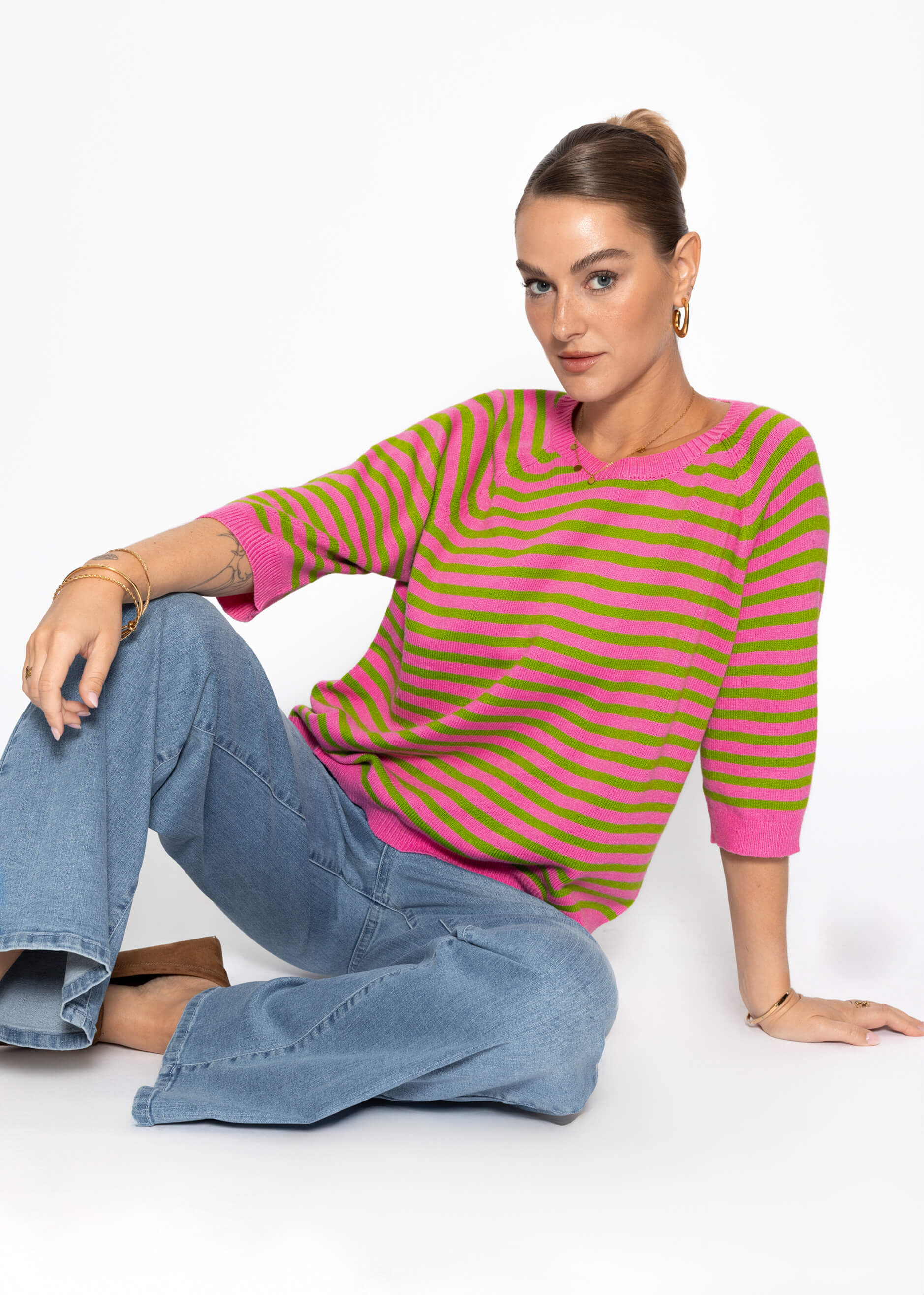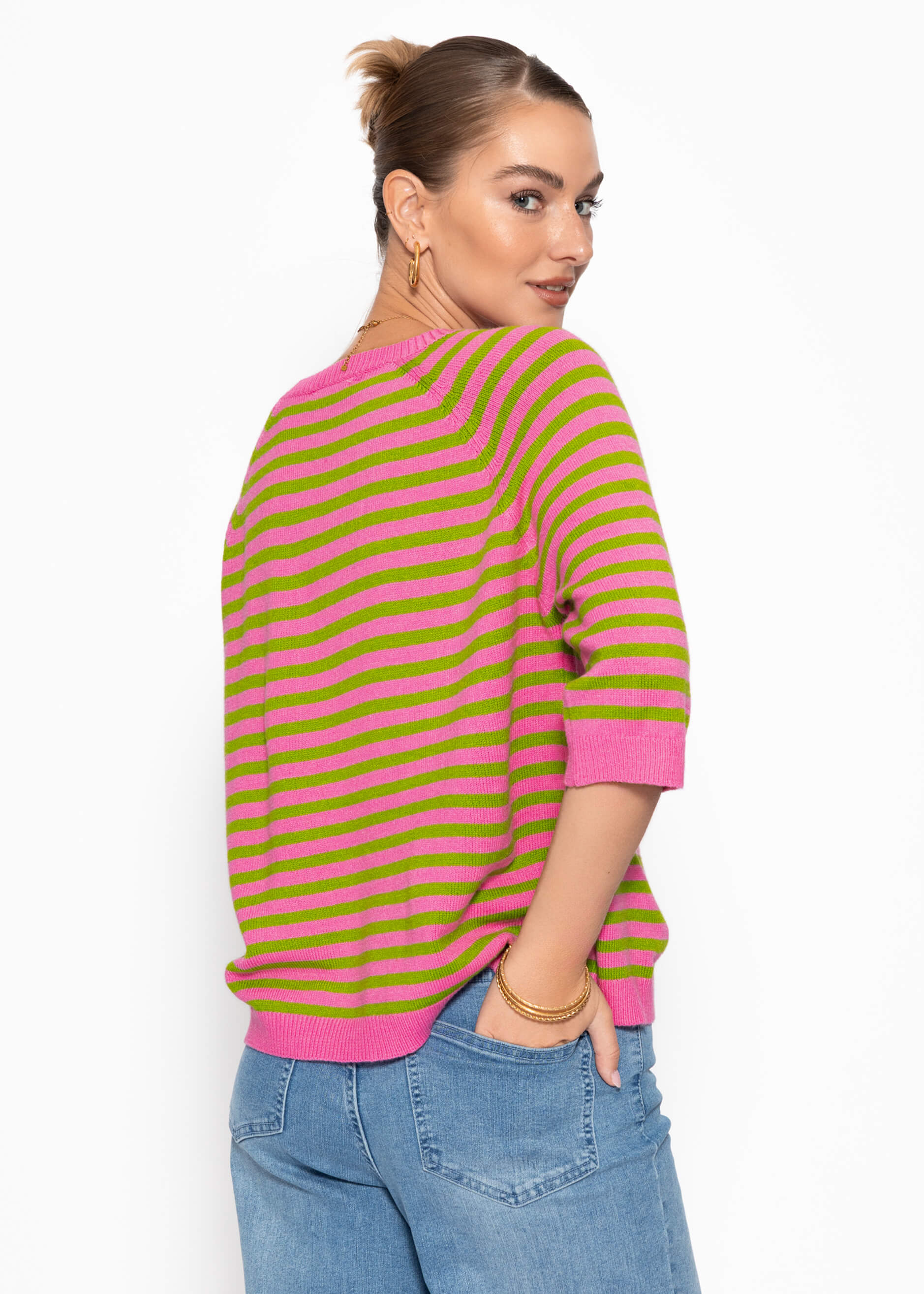 Gestreiftes Viskose-Strickoberteil - pink-grün