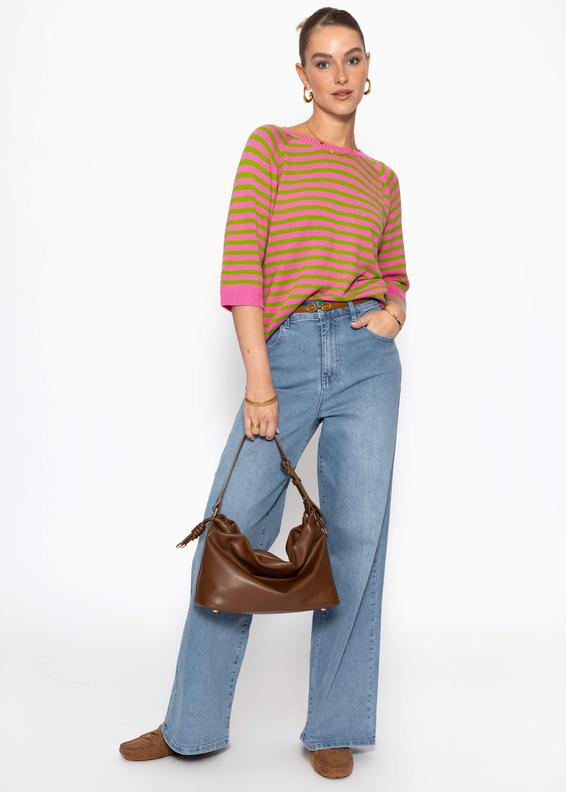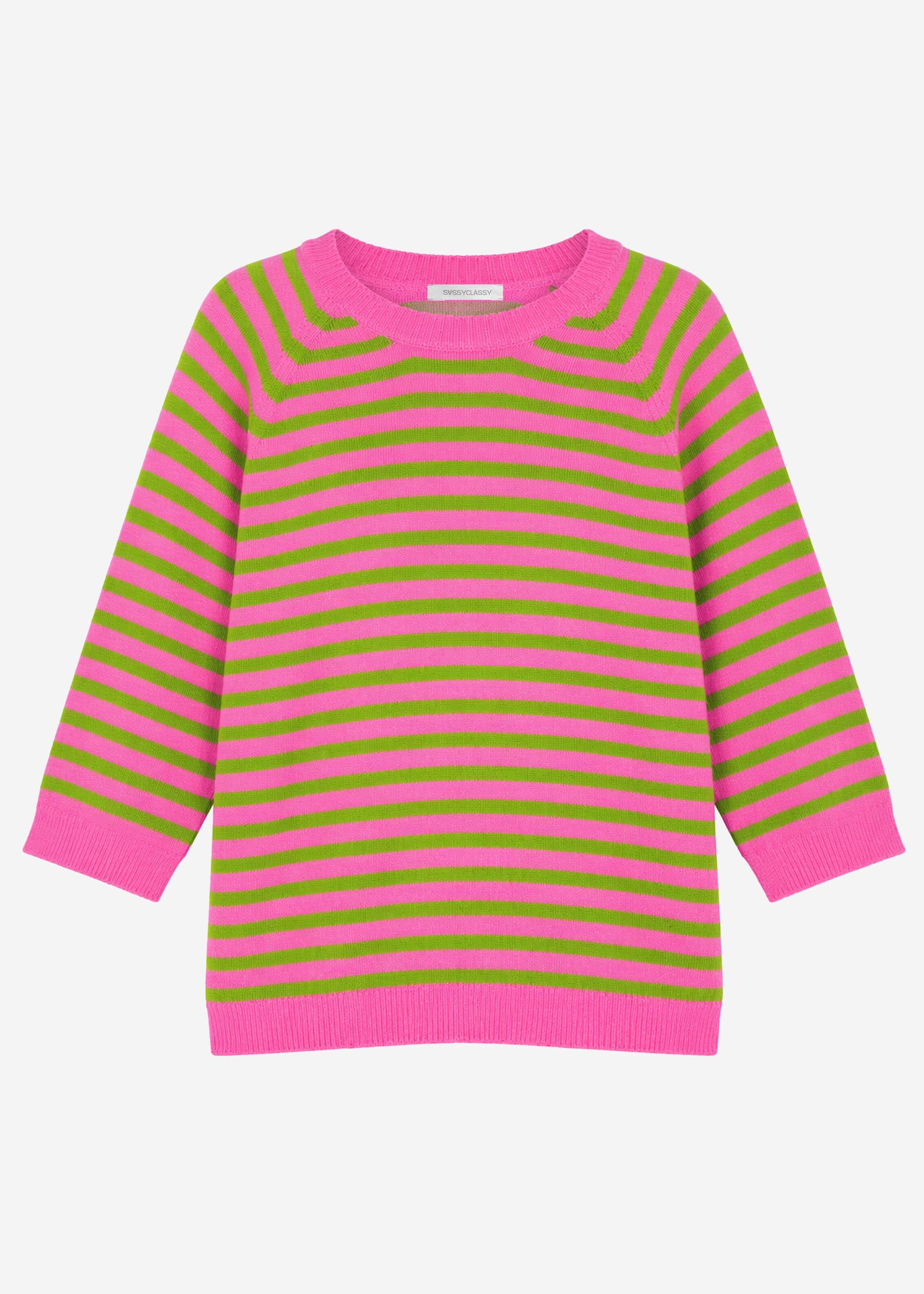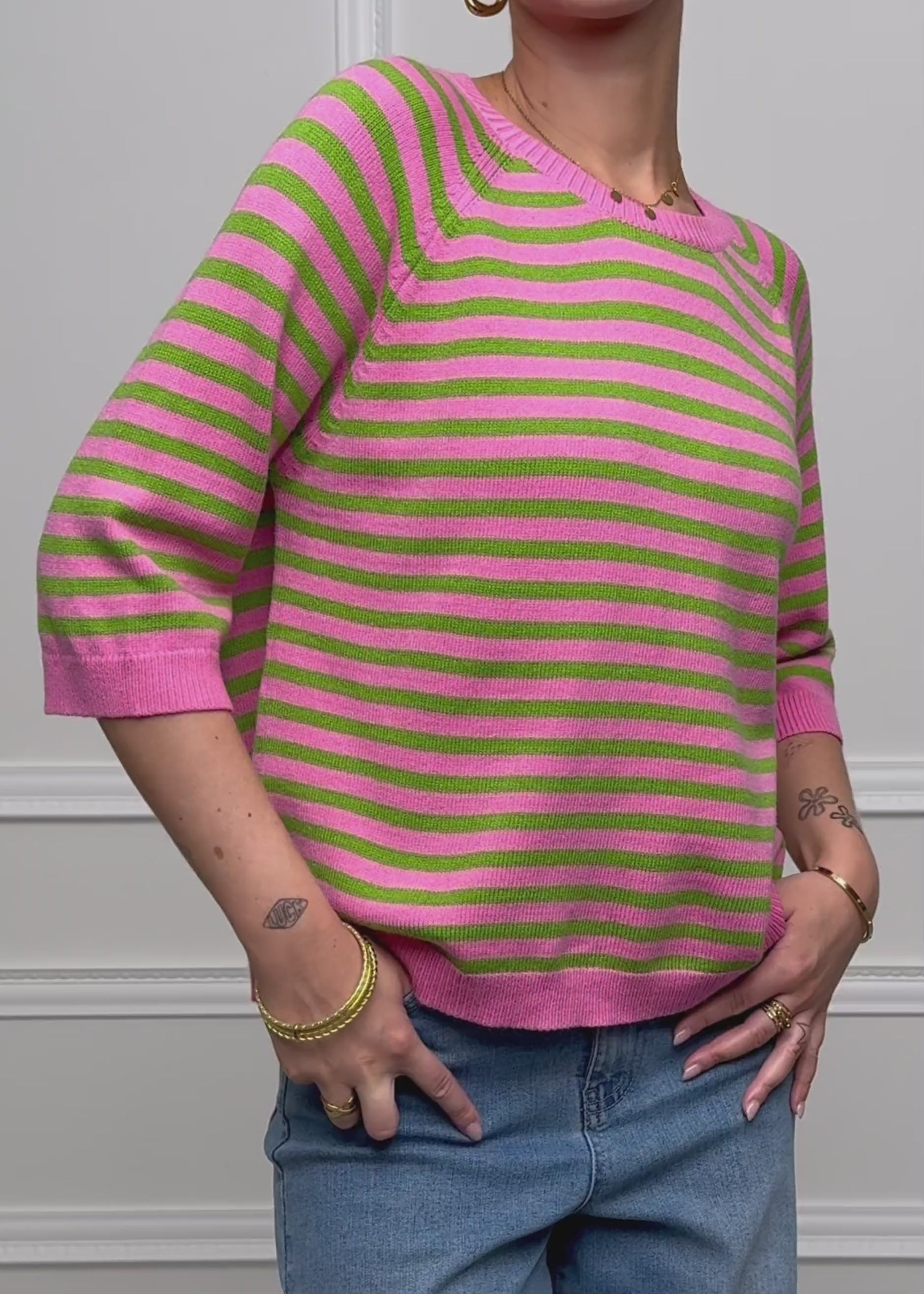 Gestreiftes Viskose-Strickoberteil - pink-grün