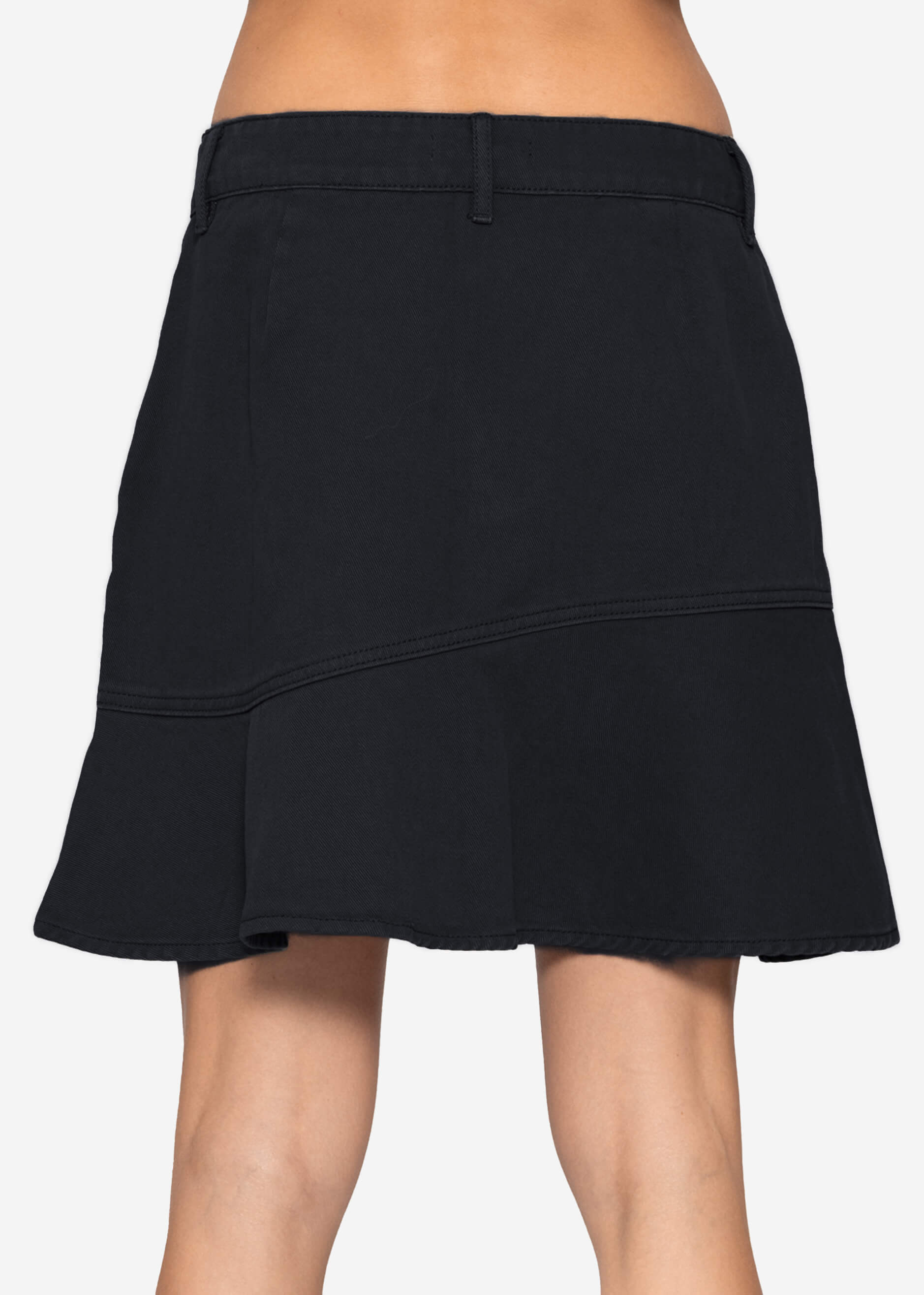 This jeans skirt combines classic denim elements with a feminine silhouette. Thanks to the slightly exhibited shape and the curved division seam, it gives it a particularly flattering fit with a modern twist. The model sits comfortably on the hip, can be styled individually thanks to the belt loops and is closed with a button and zipper. Practical bags in Five-Pocket style complete the design. Whether sporty with sneakers or chic with blouse and sandals - this denim skirt is an uncomplicated all -rounder for every day and every season.