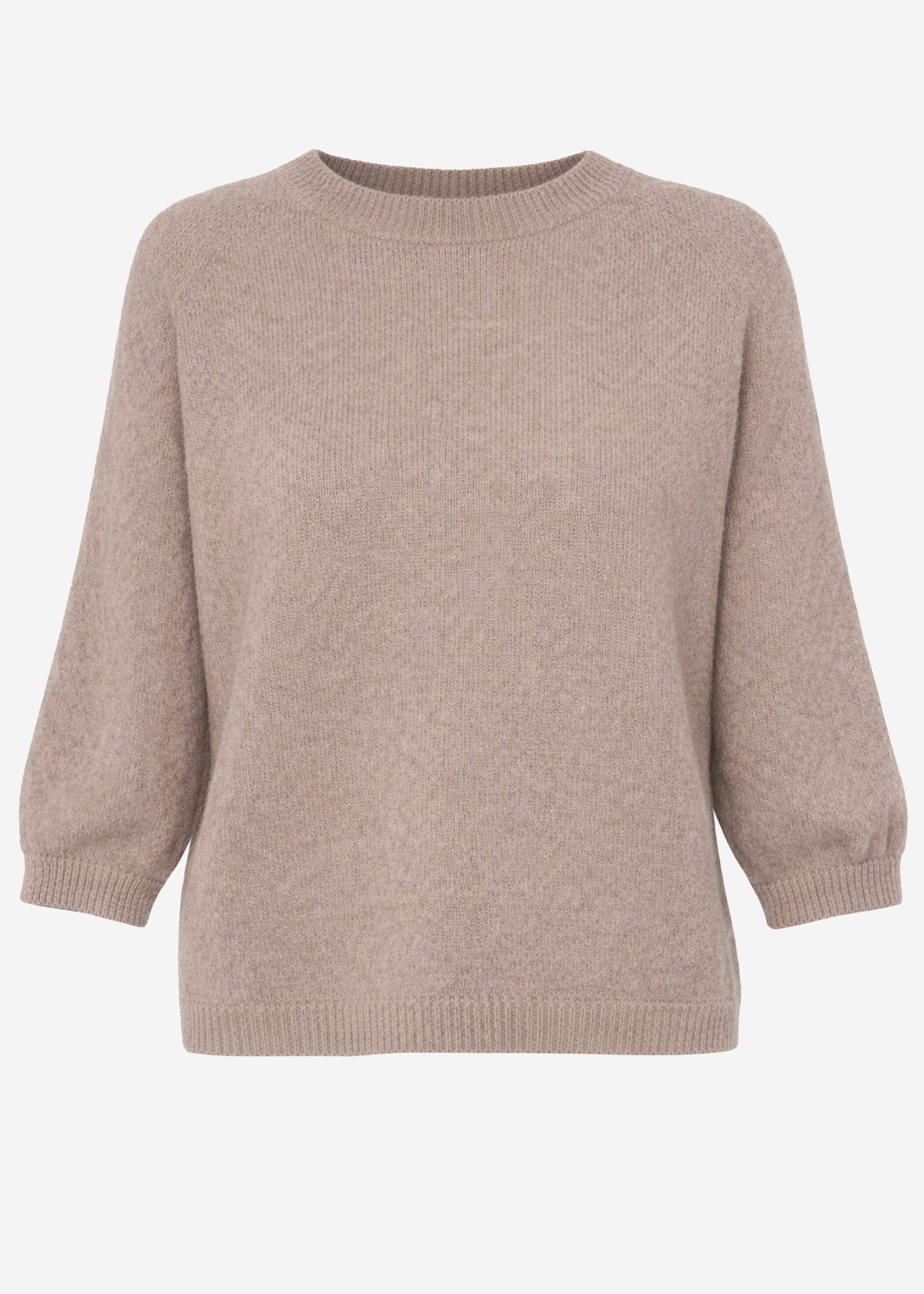 This knitted top is a combination of timeless elegance and cozy comfort and a versatile basic for any closet. It exudes simple sophistication and can be effortlessly combined with different looks. The round neckline and mid-length sleeves give the top a casual yet elegant touch. The loose fit makes it comfortable to wear, while the soft knit fabric with its high-quality finish ensures warmth and coziness. The minimalist design can be perfectly combined with both simple accessories and eye-catching jewelry.