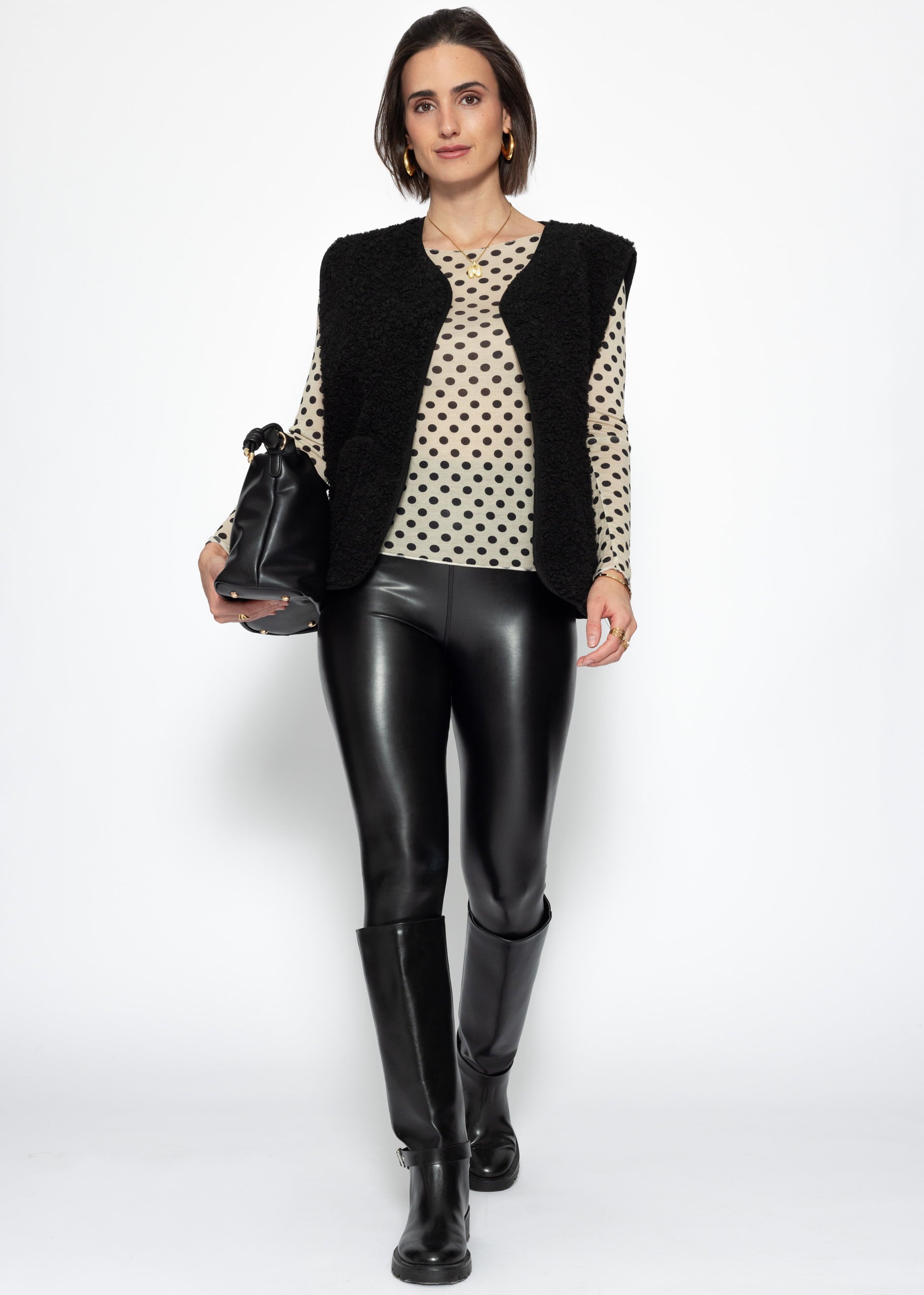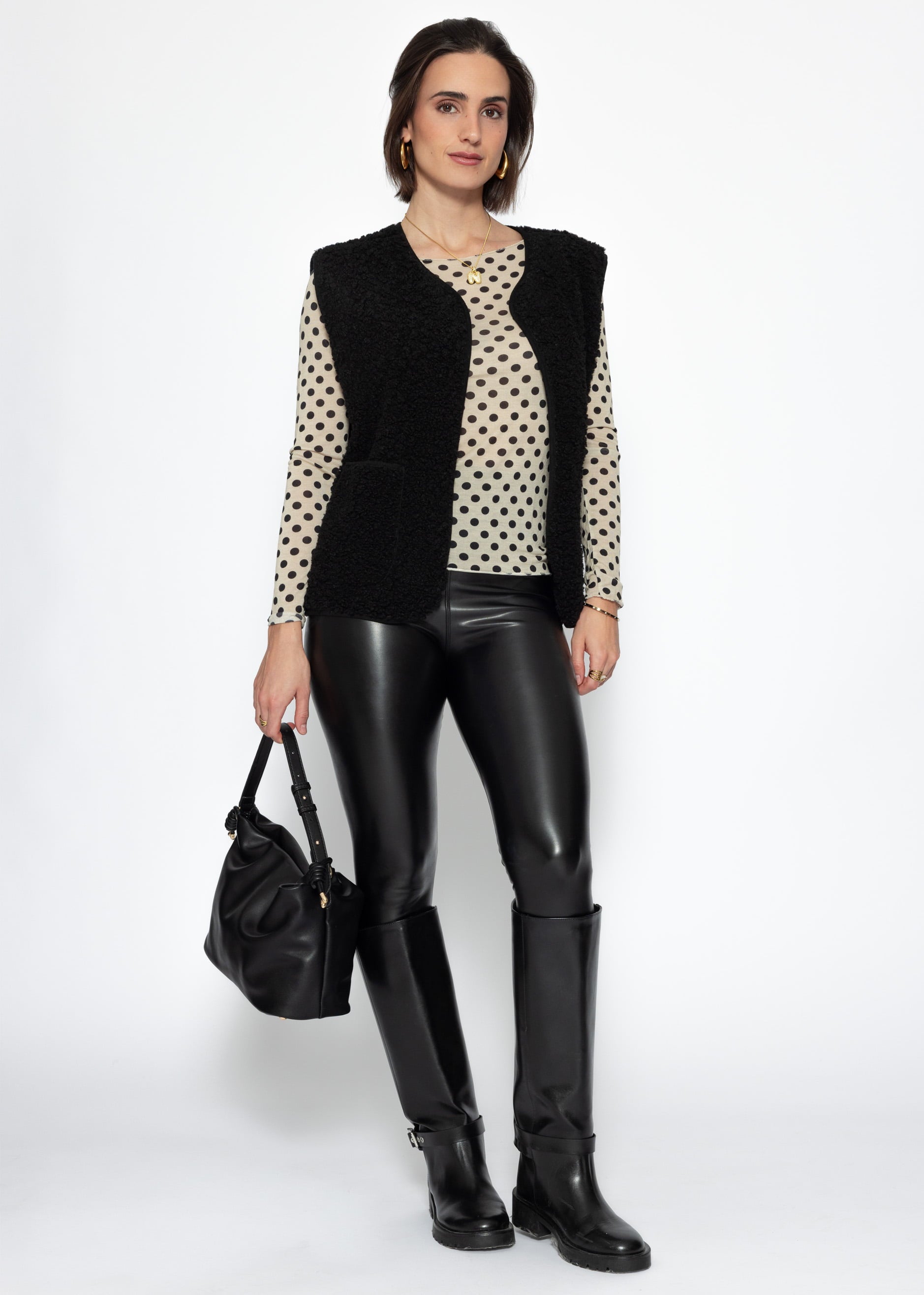 Leicht transparentes Langarmshirt mit Kaschmiranteil und Punkten - beige-schwarz