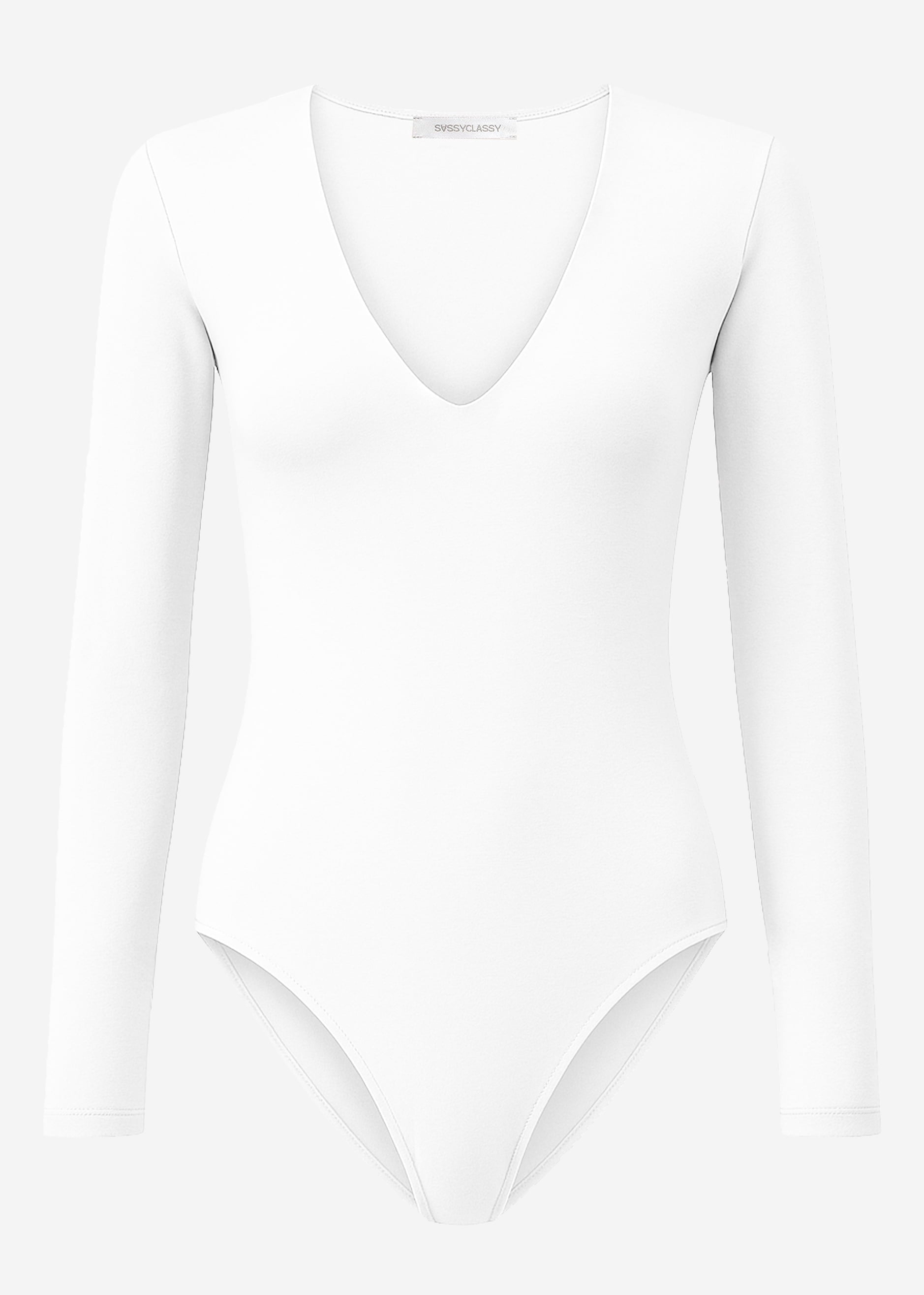This long-sleeved body combines simplicity with elegant sophistication. The deep V-neck sets a feminine highlight and discreetly emphasizes the cleavage, while the long sleeves provide a modern, clean look. Thanks to the cuddly fit, the body sits perfectly all day - no slipping, no plucking. The soft, elastic fabric ensures a comfortable fit and makes it the ideal basic for versatile outfits - whether with jeans, skirts or under the blazer.