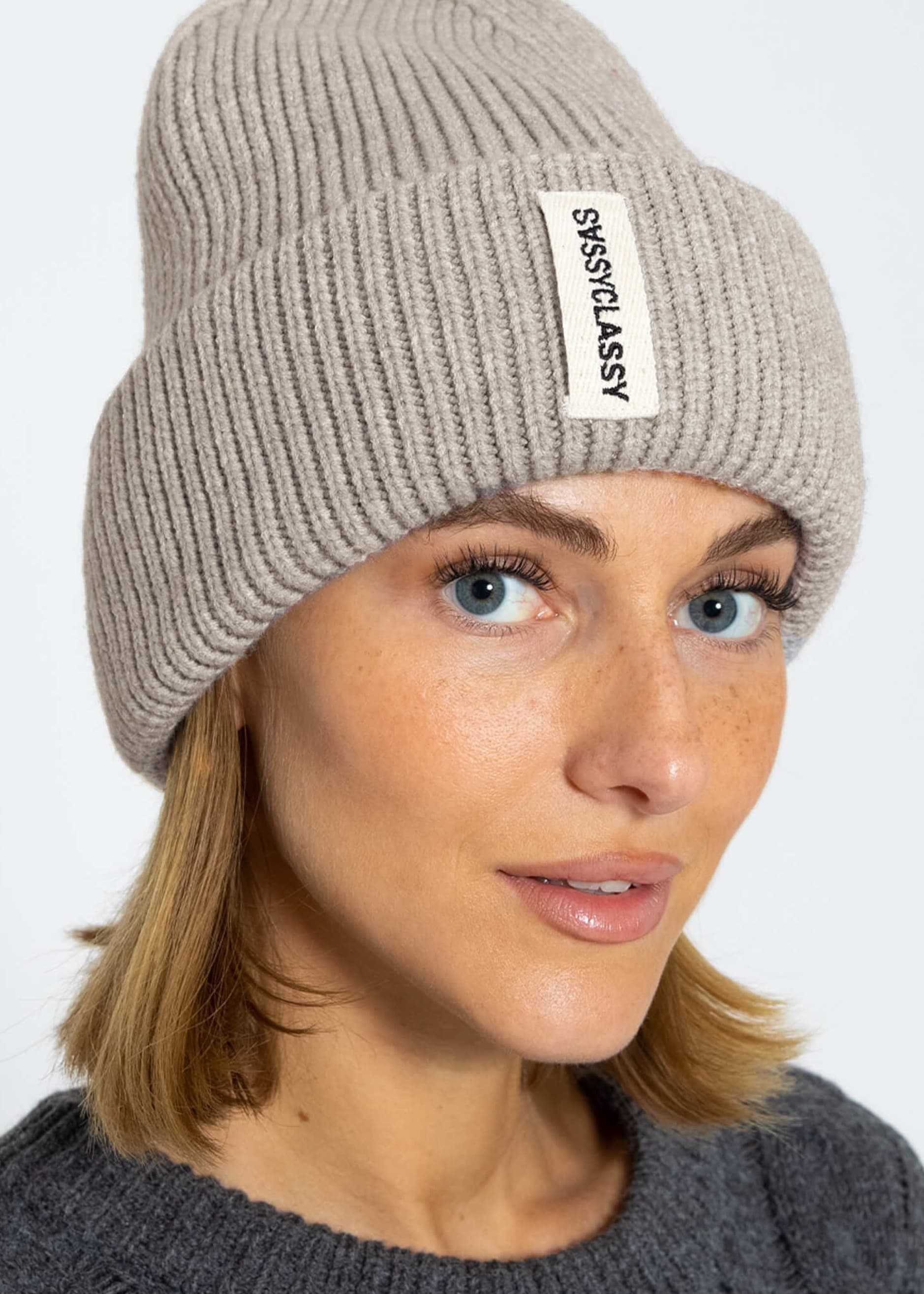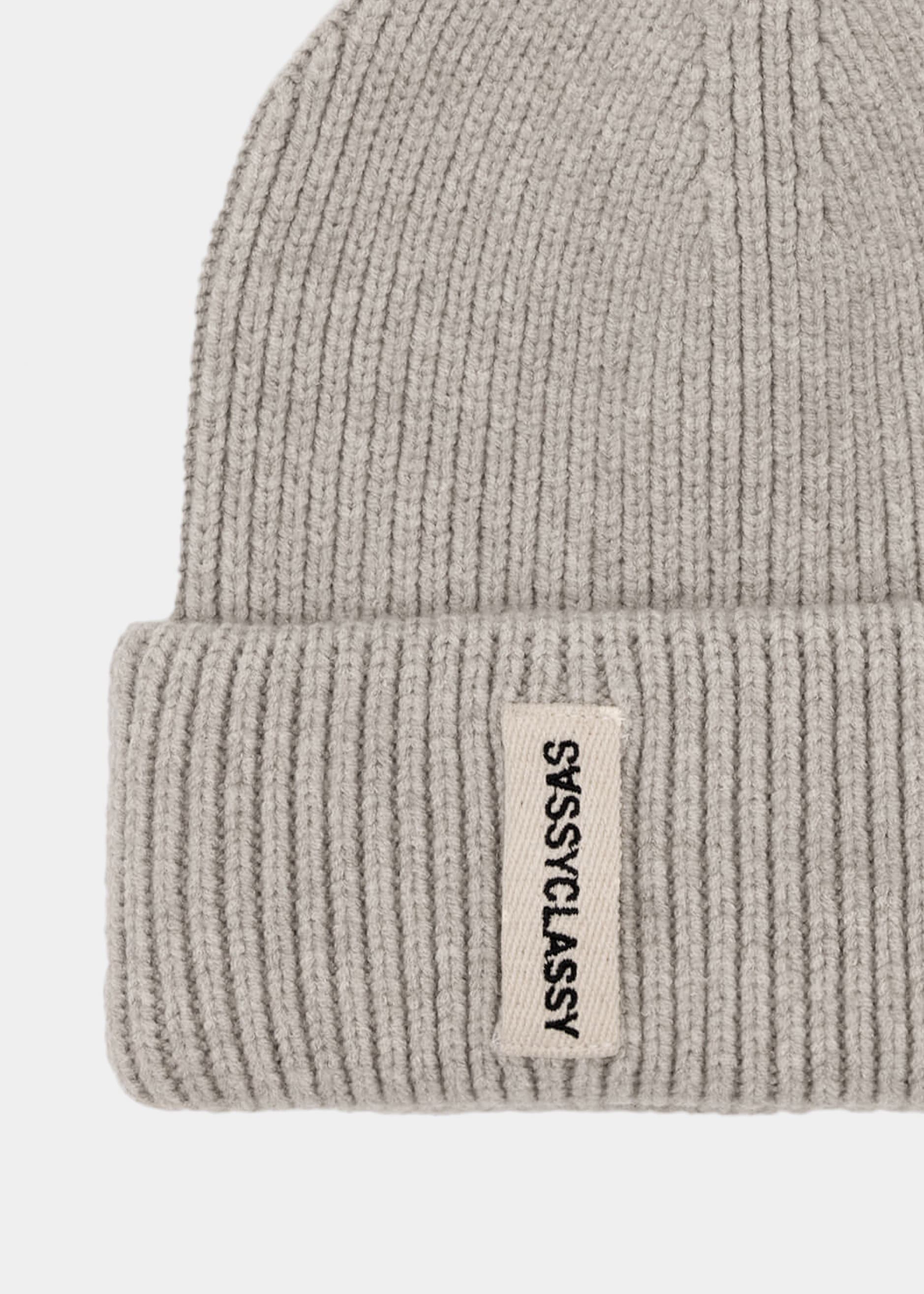 This cool beanie is a must-have for your winter wardrobe. The design features a ribbed texture, a comfortable fit, and a wide cuff. The highlight is the stylish SASSYCLASSY patch, which is attached to the front of the hat and adds a touch of exclusivity and individuality. Get this trendy beanie and make a statement in terms of fashion and style.
