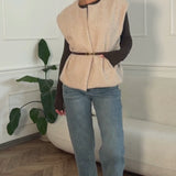 This sleeveless vest is the perfect key piece for stylish layering looks. Their open design gives every outfit a modern lightness, while the subtle, structured surface ensures a noble touch. Thanks to the straight, slightly chopy cut, the vest can be easily carried over blouses, shirts or light sweaters and thus combines elegance and cosiness. The neutral coloring makes it a versatile companion that can be ideally combined both in everyday life and in the office. A timeless essential that combines comfort and style in a natural way.