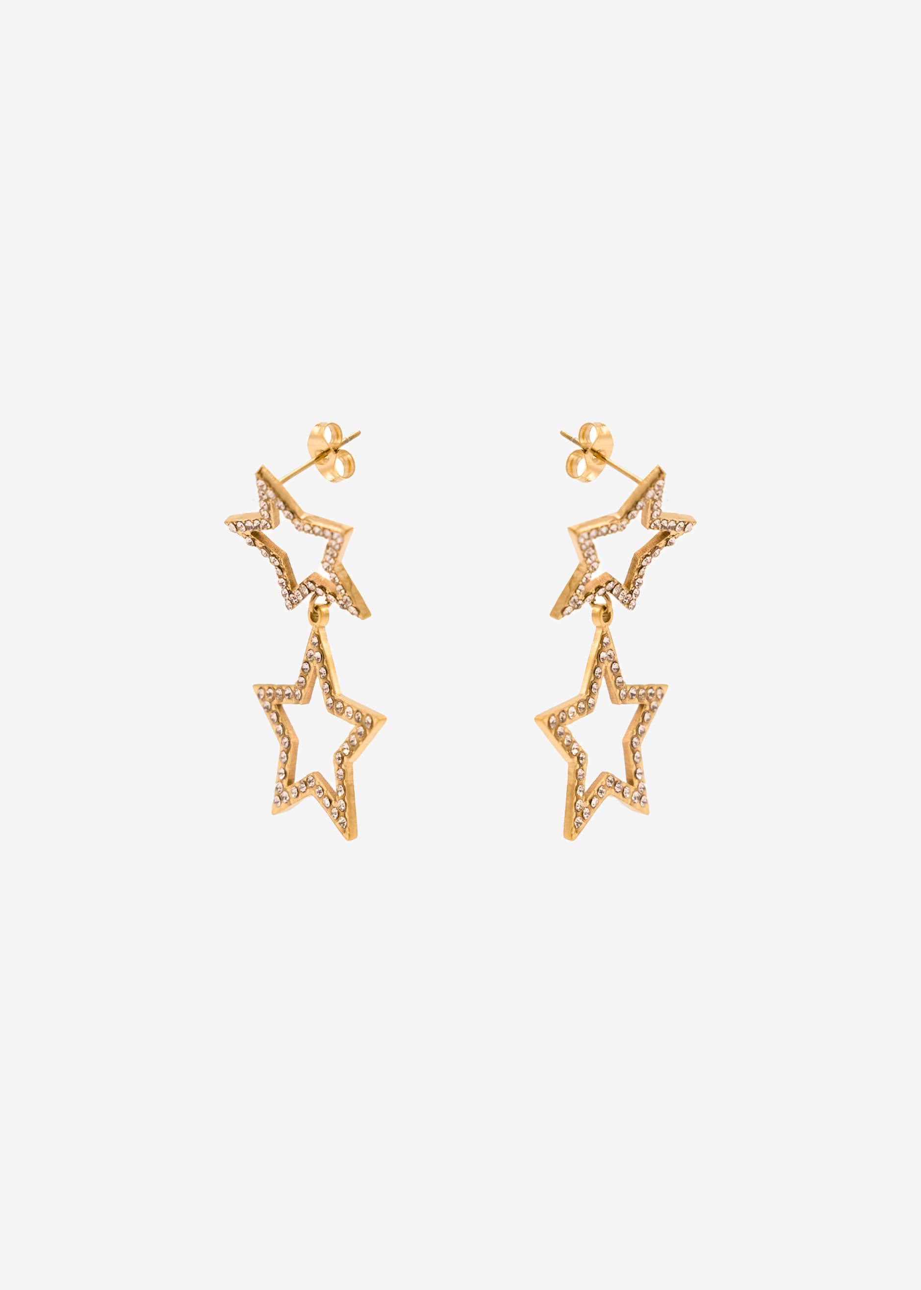 These statement stud earrings are stylish and always a head-turner with any outfit. They impress with their design featuring sparkling gold-tone stars. A classic post closure ensures a secure fit.
