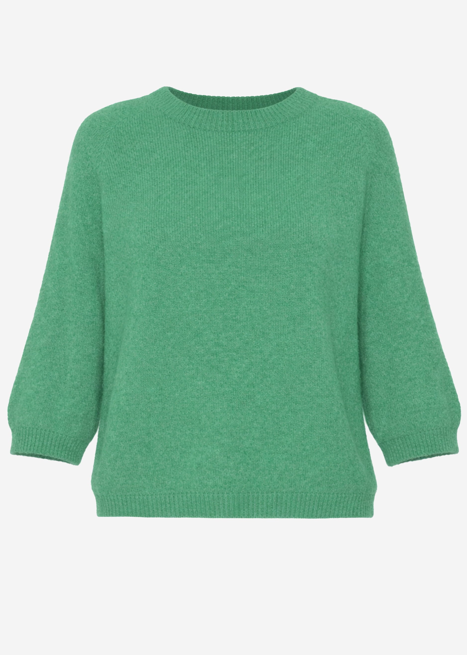 This green knit top combines timeless elegance with cozy comfort. It features a round neckline and half-length sleeves made from soft knit fabric.