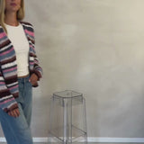 Dieser weiche Strickcardigan in Braun hat ein markantes Streifenmuster. Er besitzt voluminöse Ärmel und einen offenen Frontschnitt.