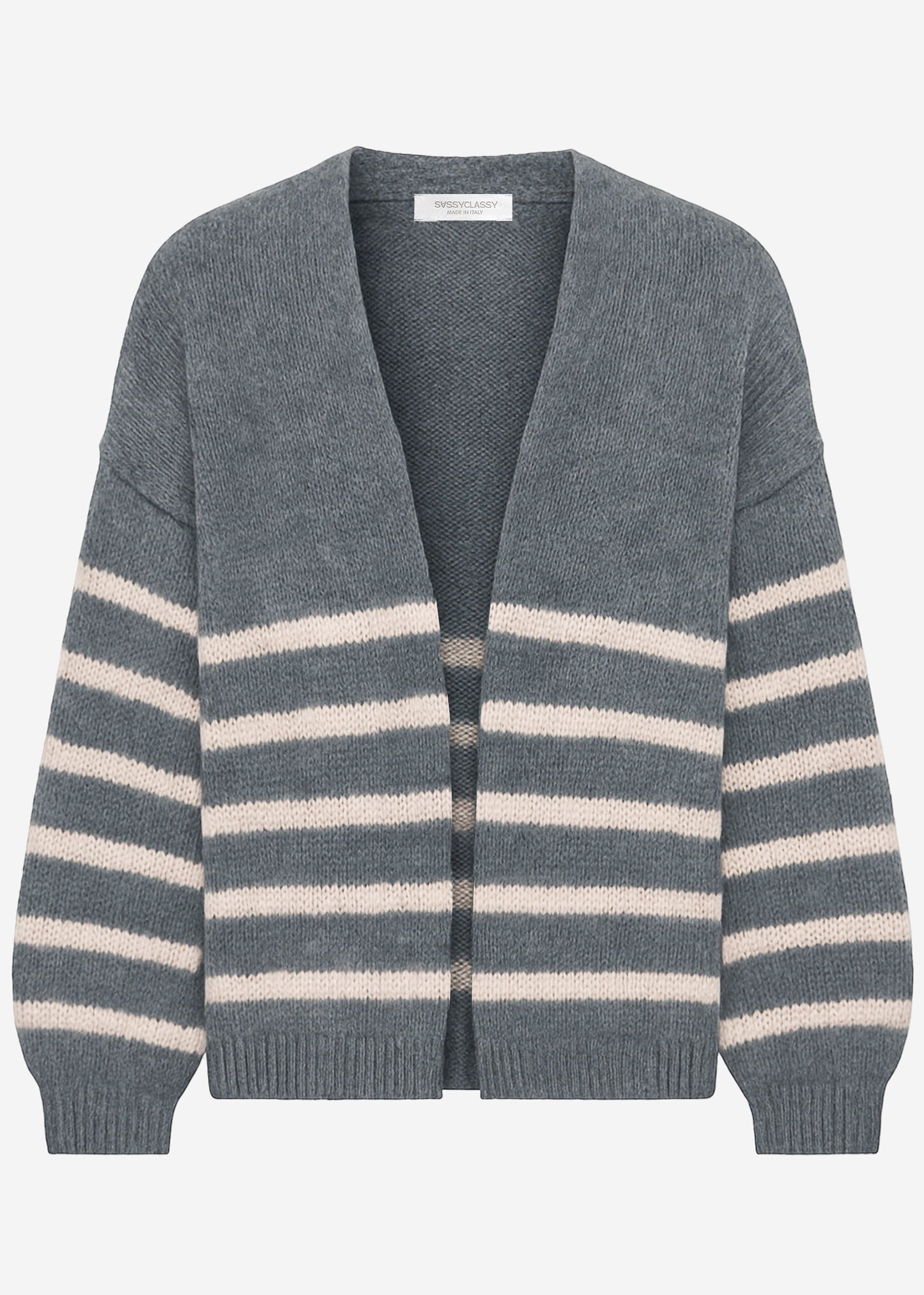 This striped cardigan is the epitome of coziness and style. Made from a soft, fluffy knit, it not only offers warmth but also a modern look that's versatile. The piece features an open cut, a loose fit, and dropped shoulders. The stylish outer seams add interesting detail to the cardigan. The design is rounded off with ribbed cuffs and a ribbed hem.