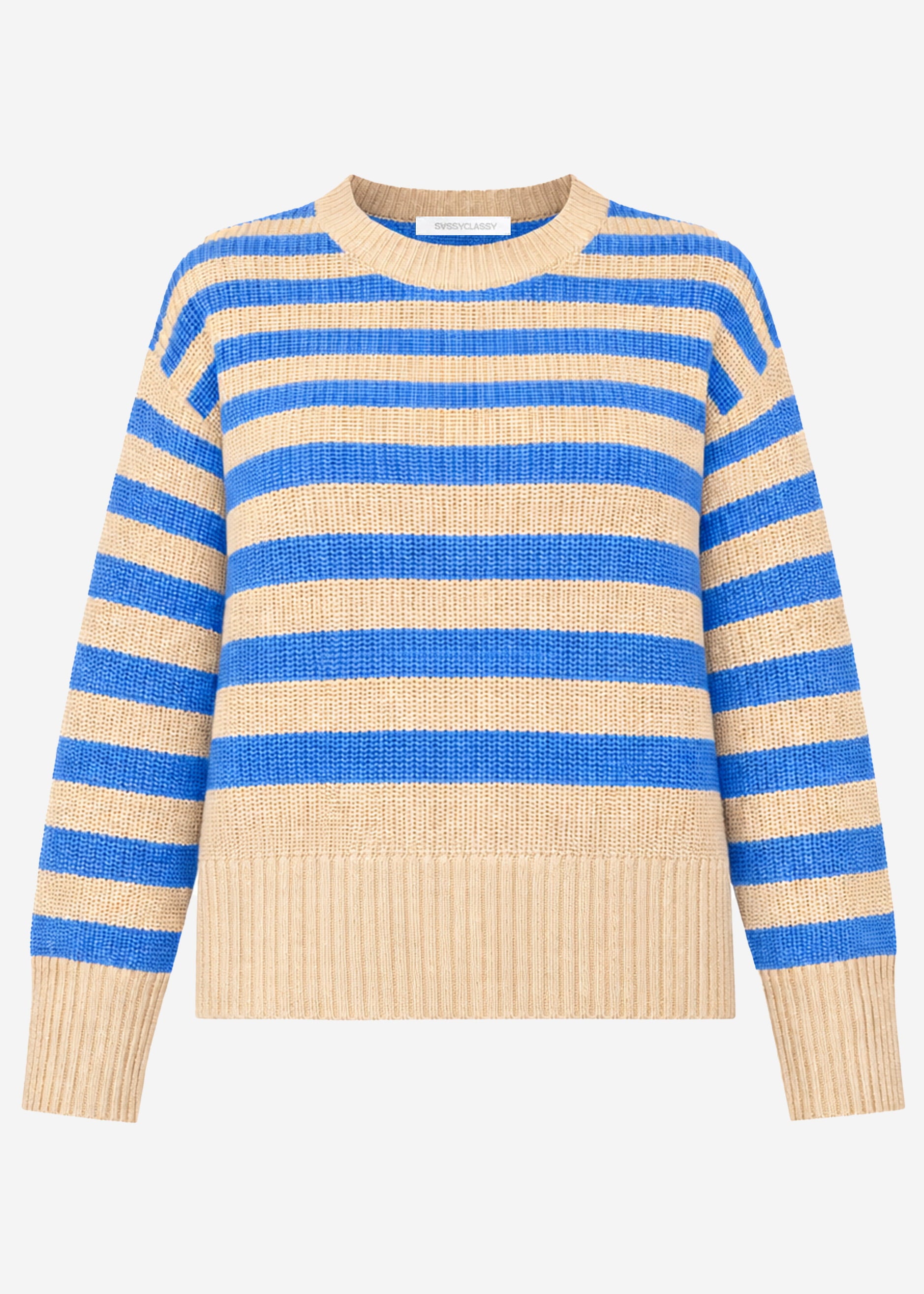 Striped cotton sweater - beige-blue