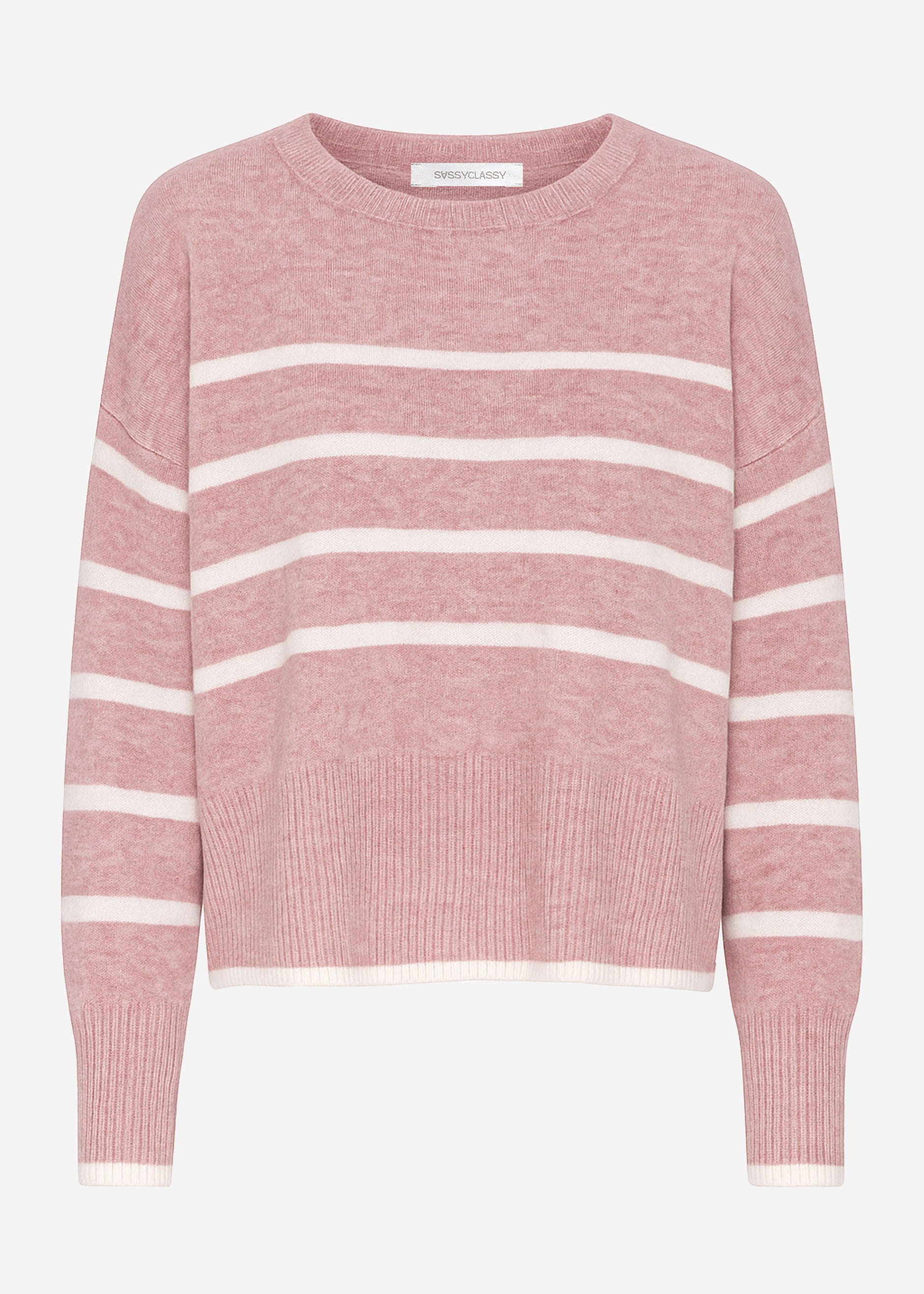 Striped knit sweater with side slits in old pink