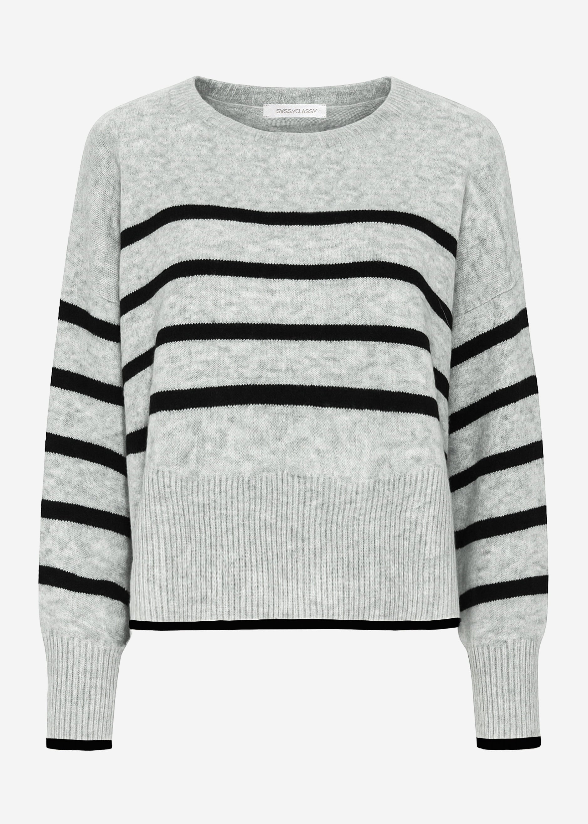 This striped sweater combines timeless style with modern casualness. The classic round neck and loose fit ensure a high level of comfort, while the side slits at the hem give the design a casual touch and provide additional freedom of movement. The striped pattern brings a fresh dynamic to any outfit and can be combined in a variety of ways, whether with jeans, trousers, or a skirt. It's a simple companion that ensures a stylish look both for everyday wear and leisure.