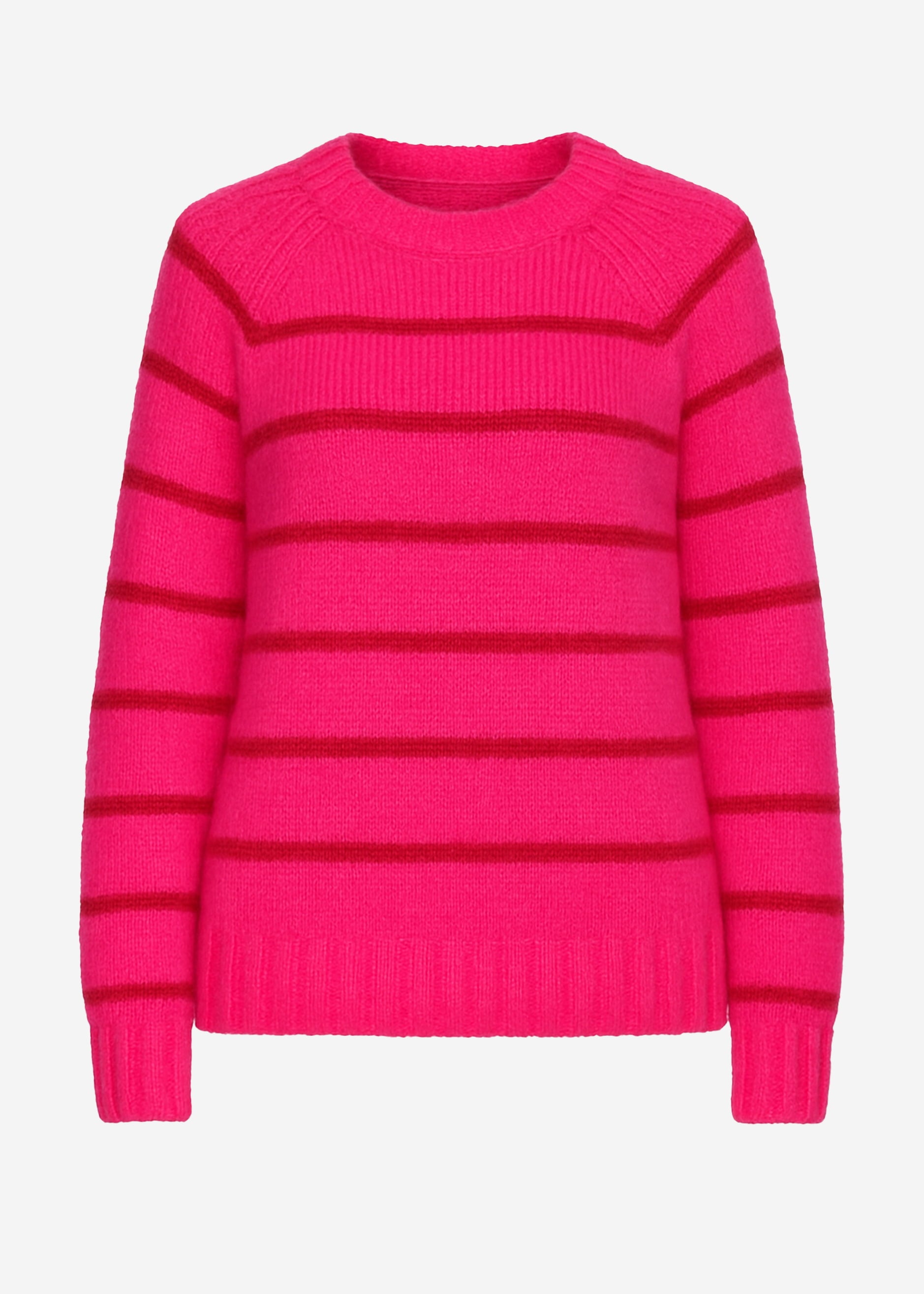 This knitted sweater impresses with its timeless striped pattern and pleasantly loose fit. The classic round neck and wide ribbed cuffs at the hem and sleeves ensure a casual look and added comfort. The chunky knit structure gives the sweater a modern, relaxed feel and makes it versatile to combine with jeans, trousers, or skirts. A cozy all-rounder that no wardrobe should be without.