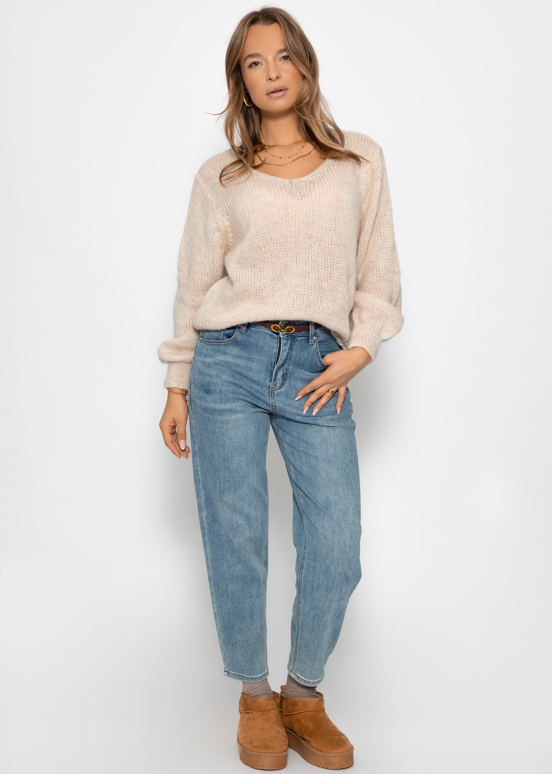 Oversized sweater made of super soft, loose knit. The sweater features a V-neck and long sleeves with cuffs. You can find this basic sweater here in several colors.