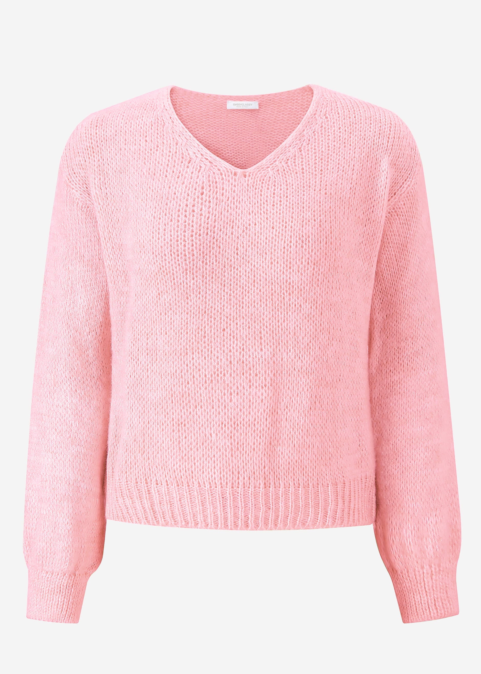 Oversized sweater made of super soft, loose knit. The sweater features a V-neck and long sleeves with cuffs. You can find this basic sweater here in several colors.