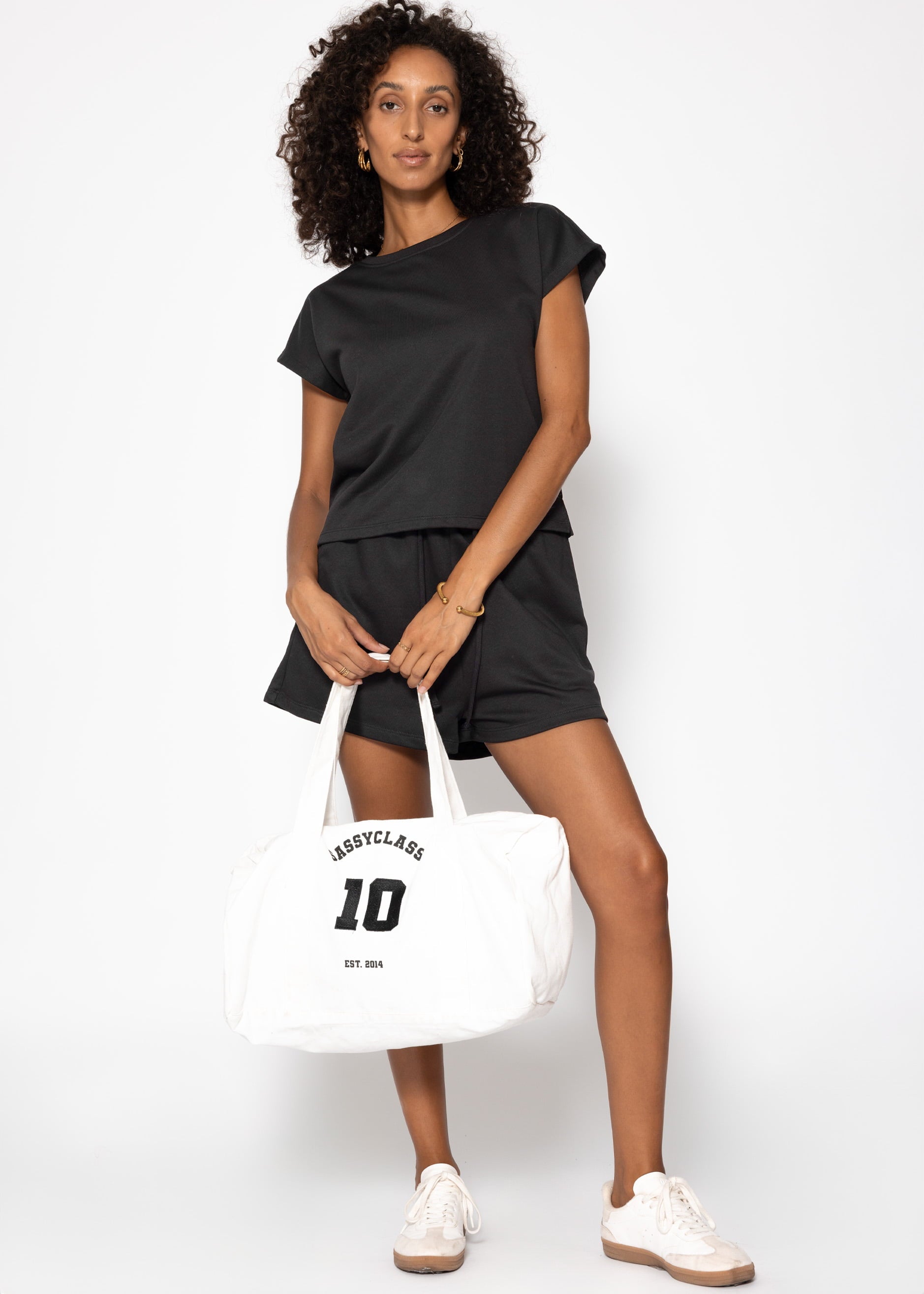 This casual sweatshorts combines comfort and style across the board. It is made of soft sweat material and thus ensures a comfortable fit. The model is perfect for casual casual looks. The elastic waistband with a cord train enables an individual fit, while the side intervention bags offer practical storage space. A special detail are the attached back pockets, which give the shorts a sporty, relevant touch. In combination with the color-matching sweatshirt, a stylish co-order look is created that looks both comfortable and modern.