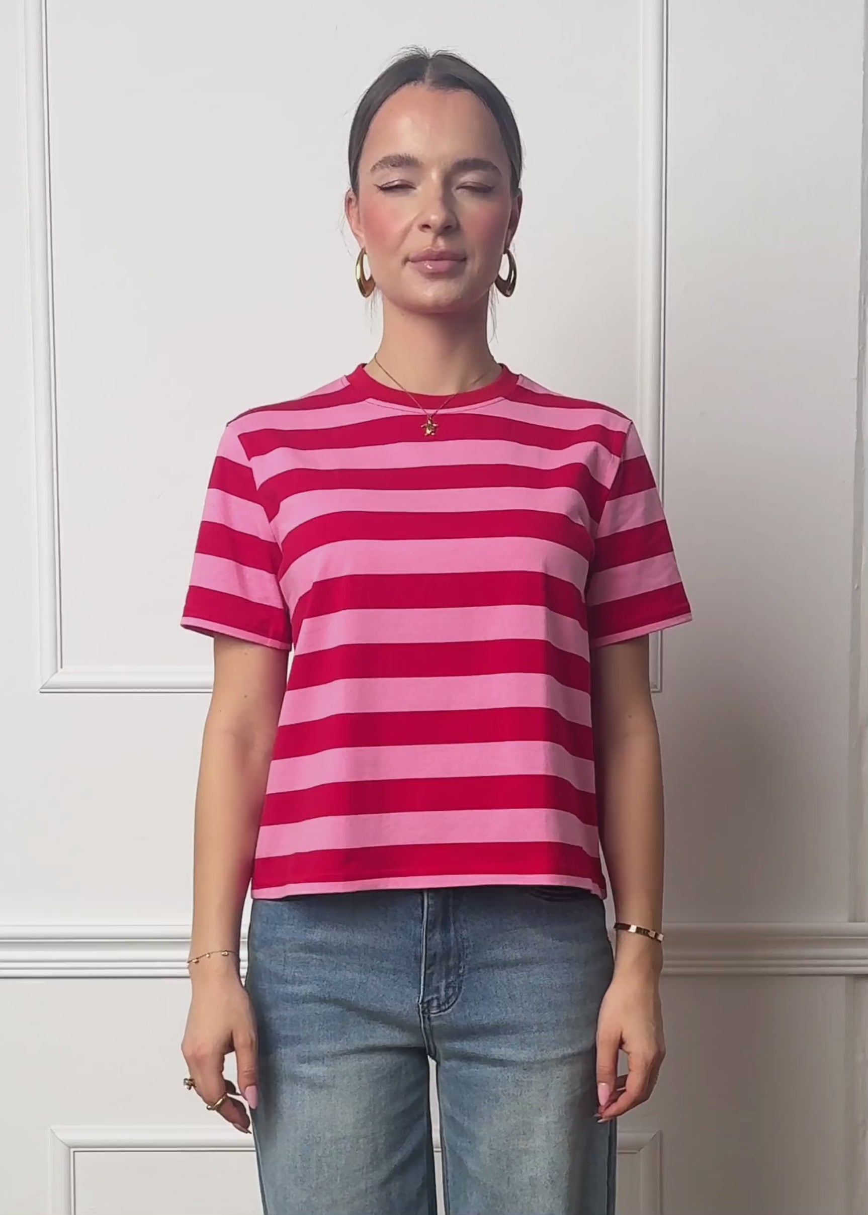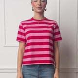 T-shirt with a wide striped pattern. Oversized cut with a round neck and short sleeves for a timeless look. Simple design and ideal as a versatile basic for everyday wear and leisure.