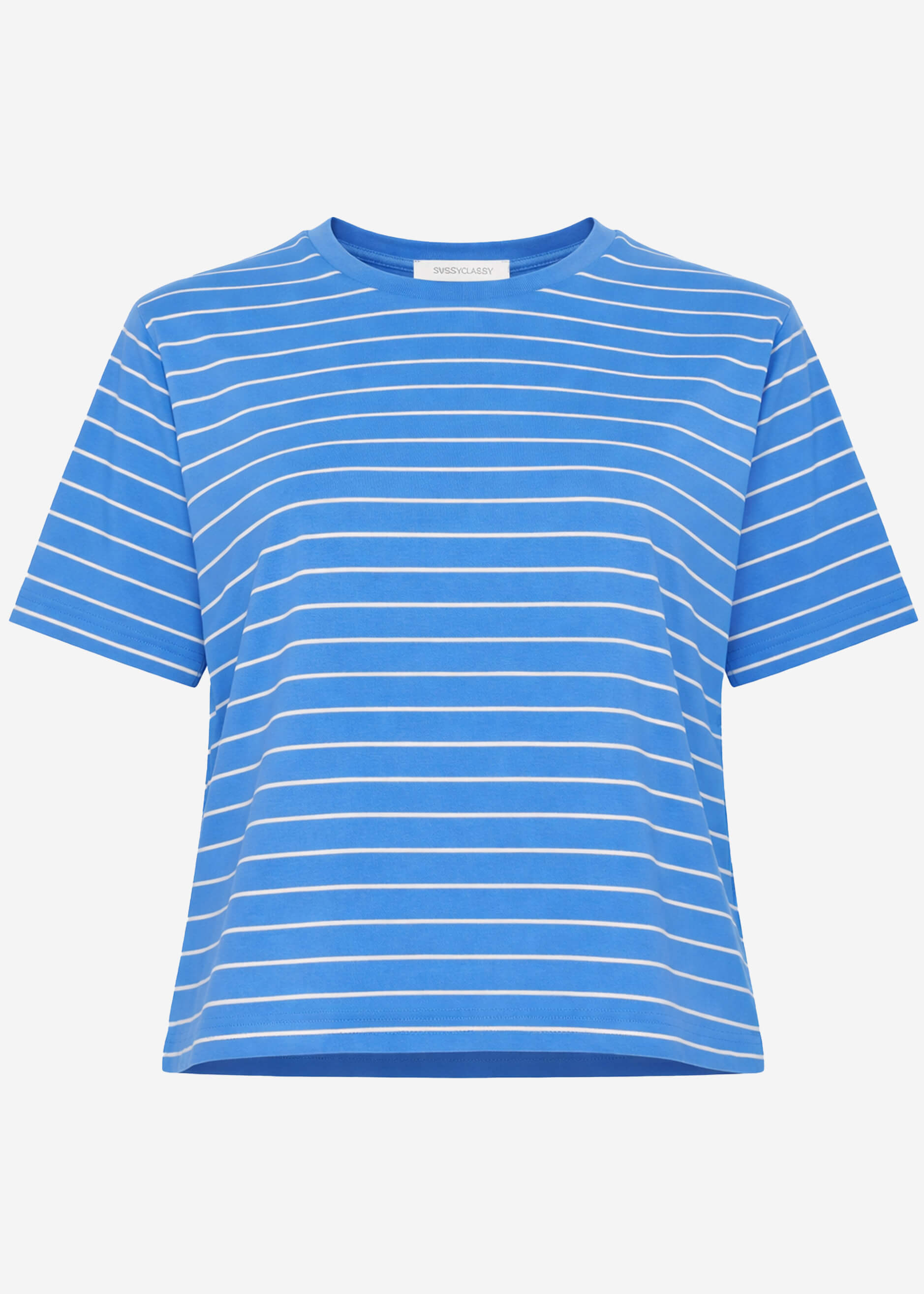 T-shirt with a subtle striped pattern for a timeless, fresh look. Classic crew neck and straight fit with short sleeves. Simple design, versatile enough for everyday wear and leisure.