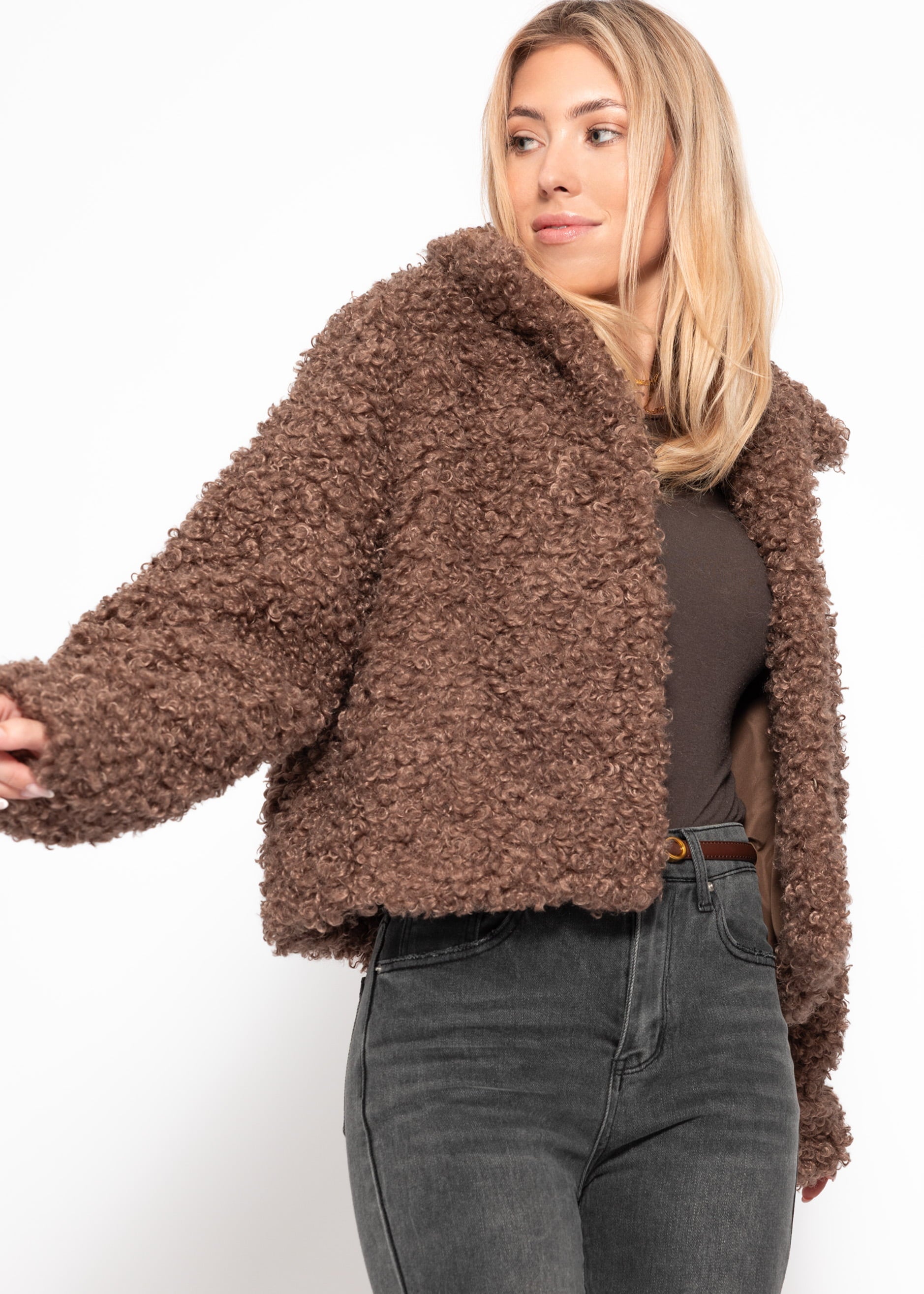 Teddy fur jacket in brown