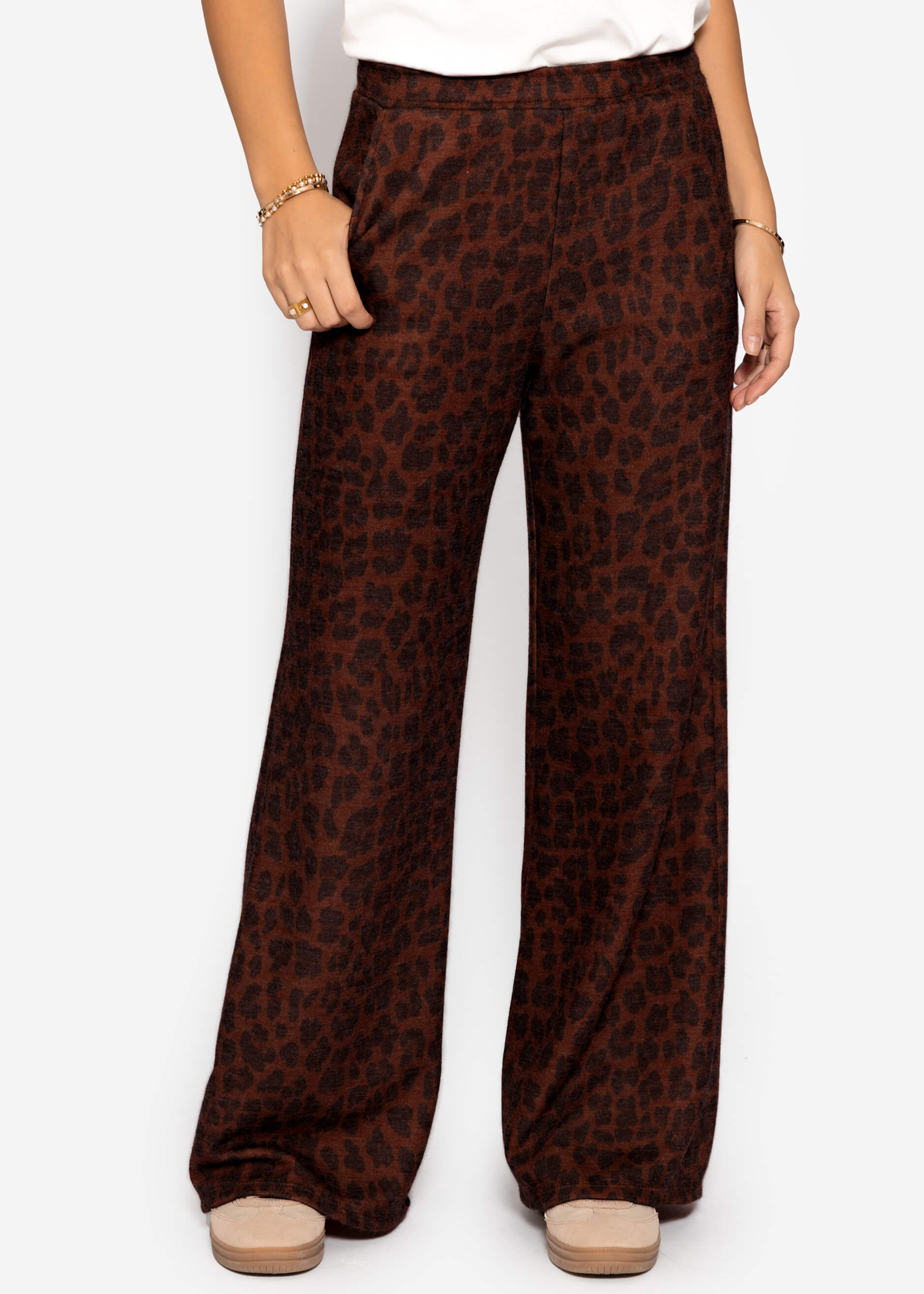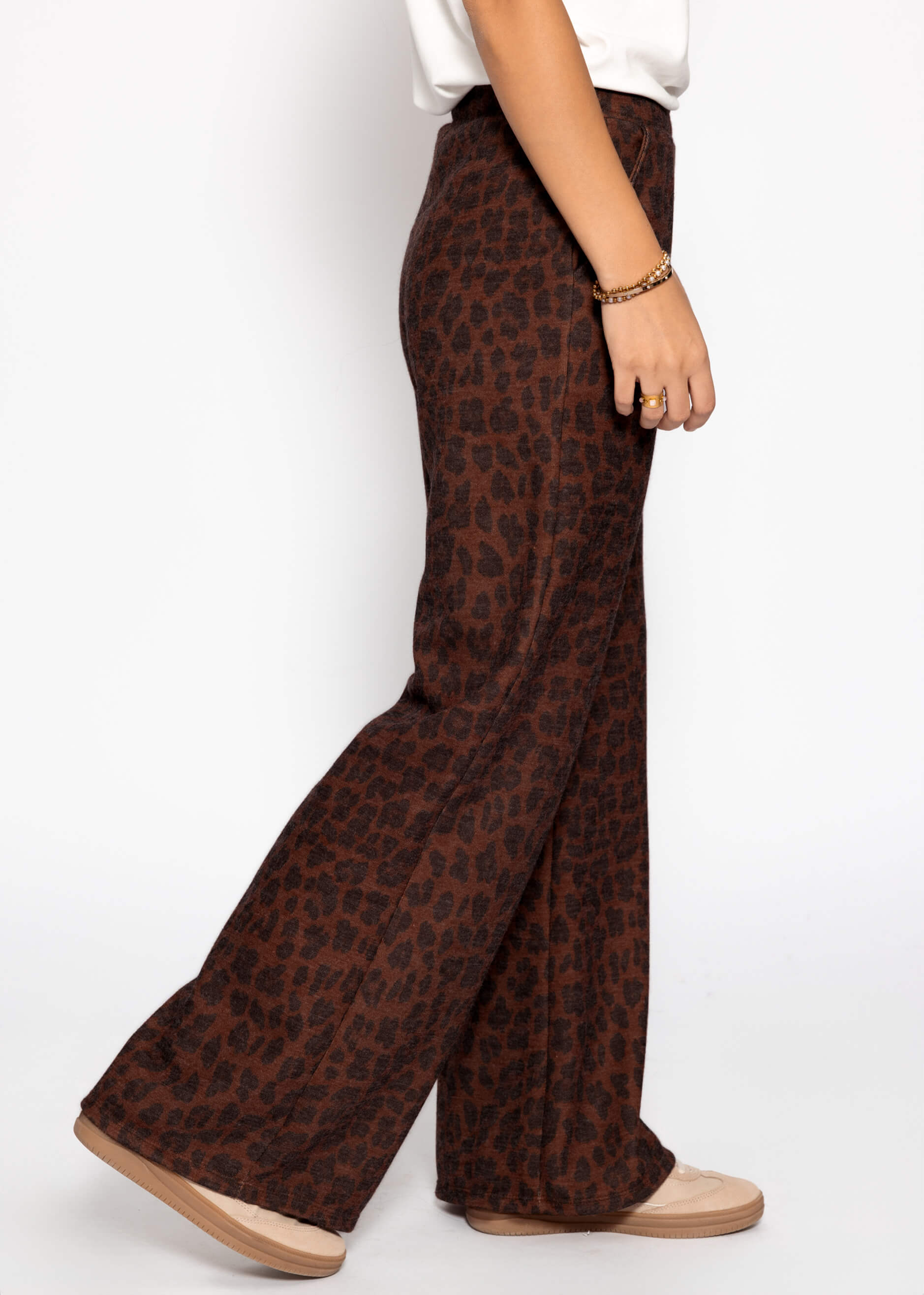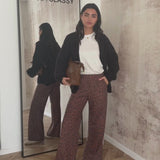 Wide trousers with Leo print in brown