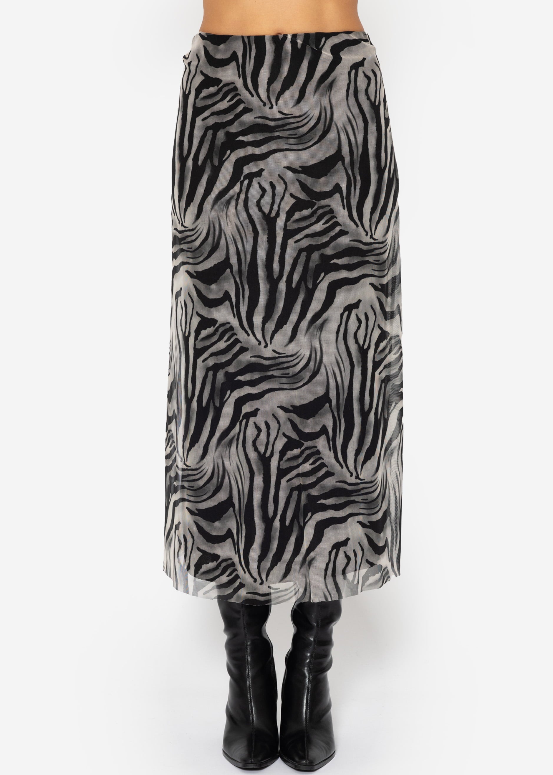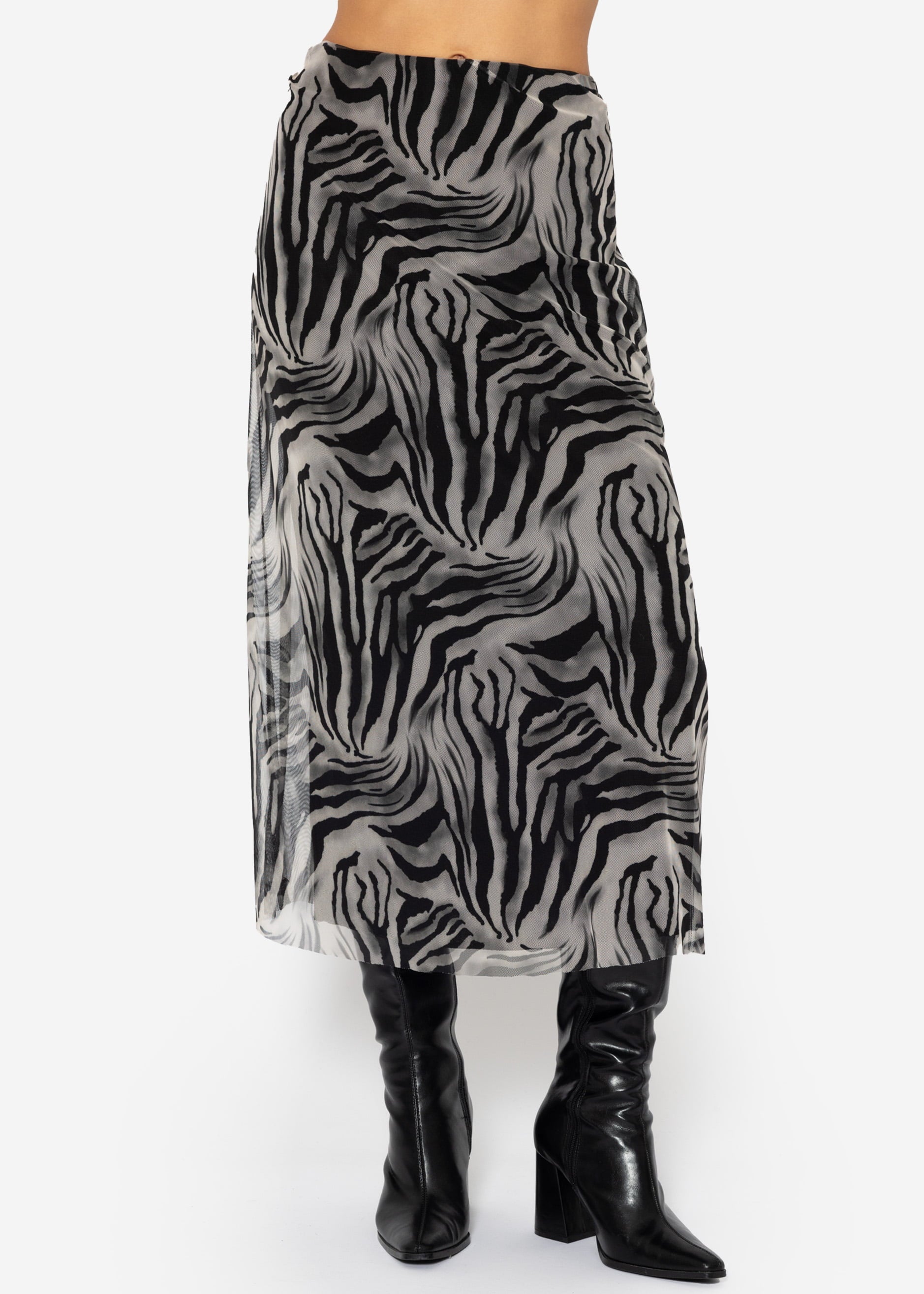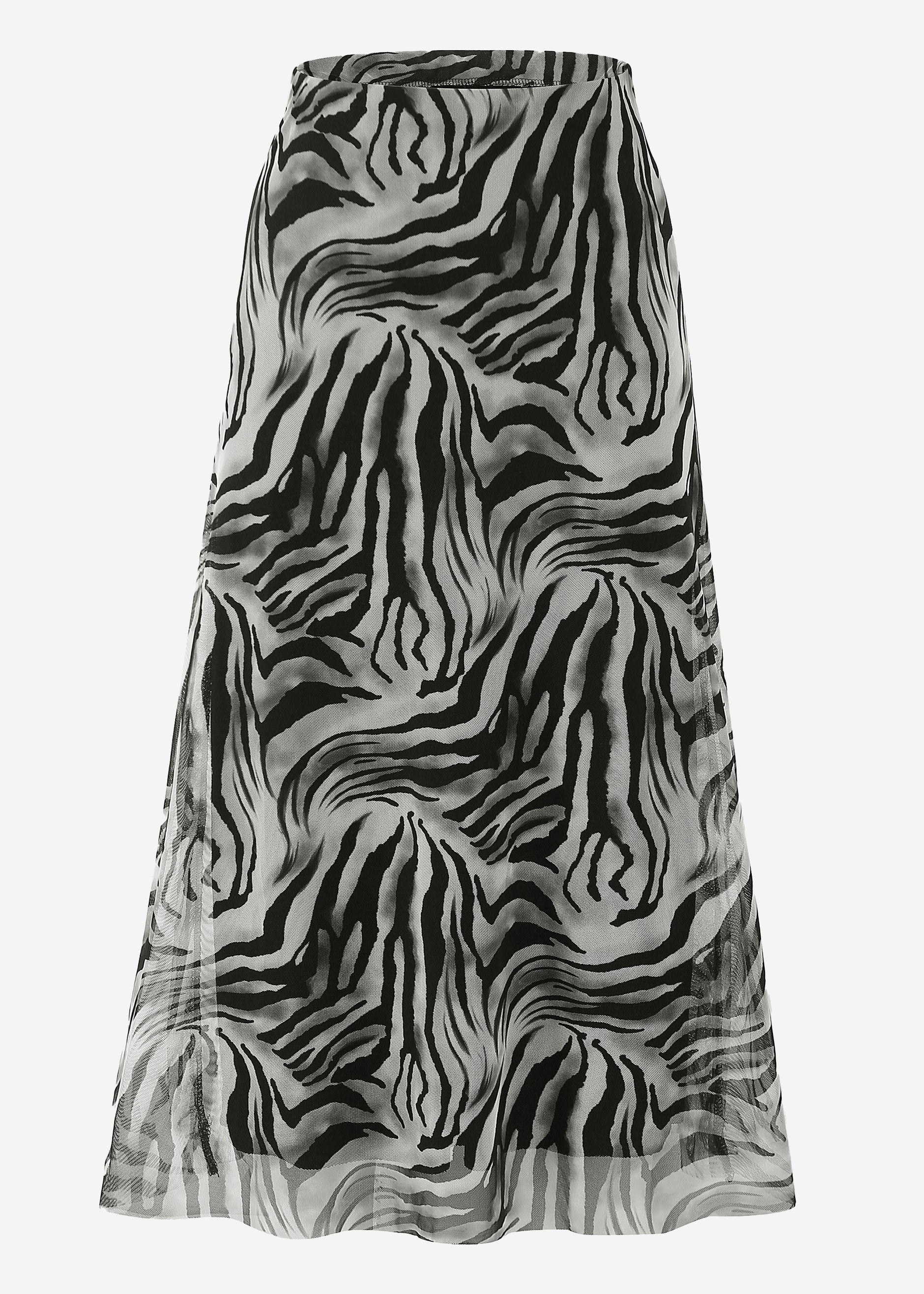 Ausgestellter Mesh-Rock mit Zebra Print in Hellgrau