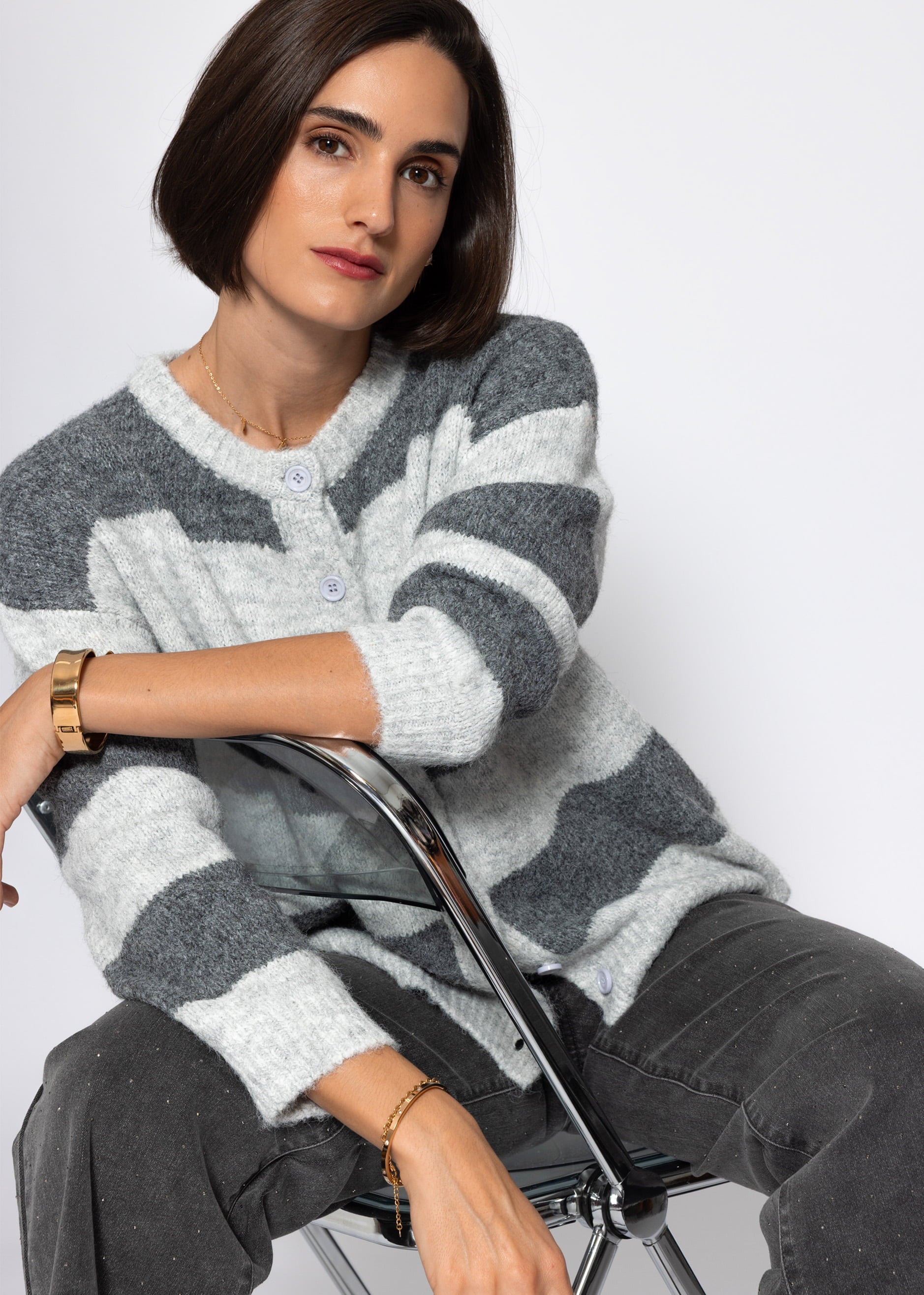 Cardigan mit Blockstreifen - grau