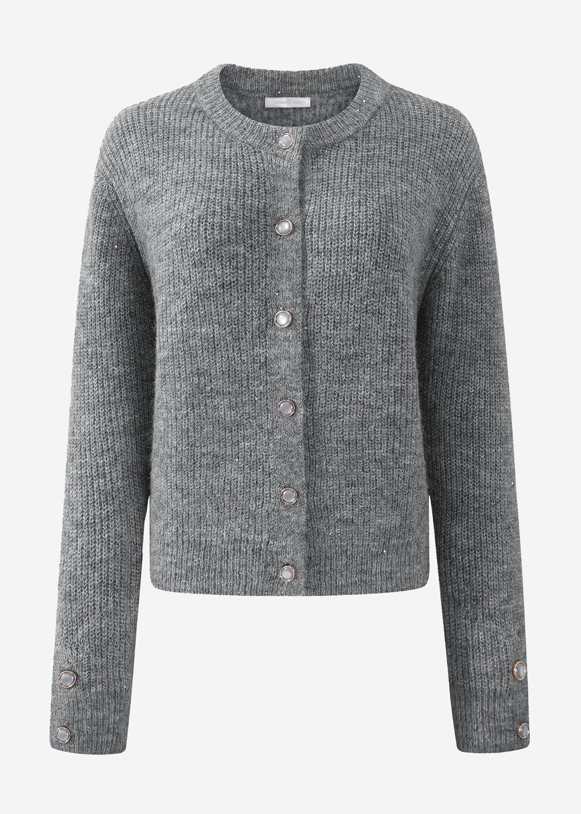Dieser locker geschnittene Cardigan aus weichem, geripptem Strick hat eine dezente Struktur. Zarte Pailletten und edle Knöpfe runden das stilvolle Design ab.