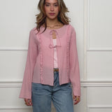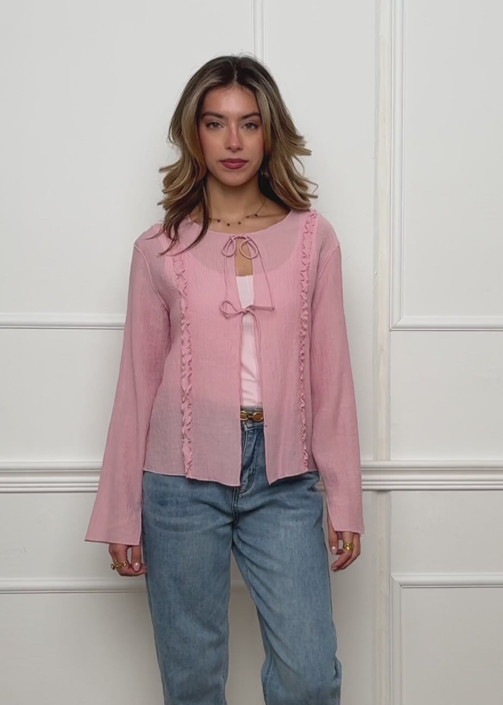 Chiffon Bluse mit Schleifenverschluss - rosa