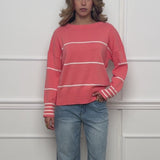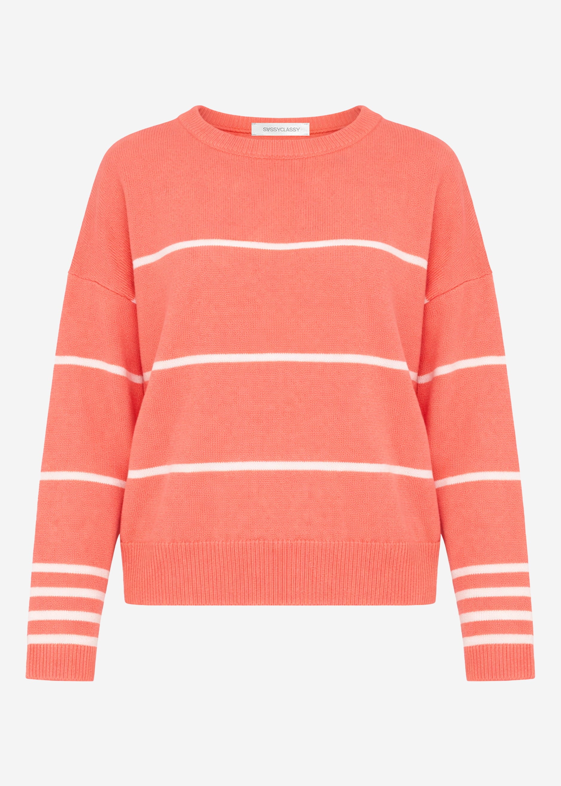 Feinstrickpullover mit Kontraststreifen in Koralle