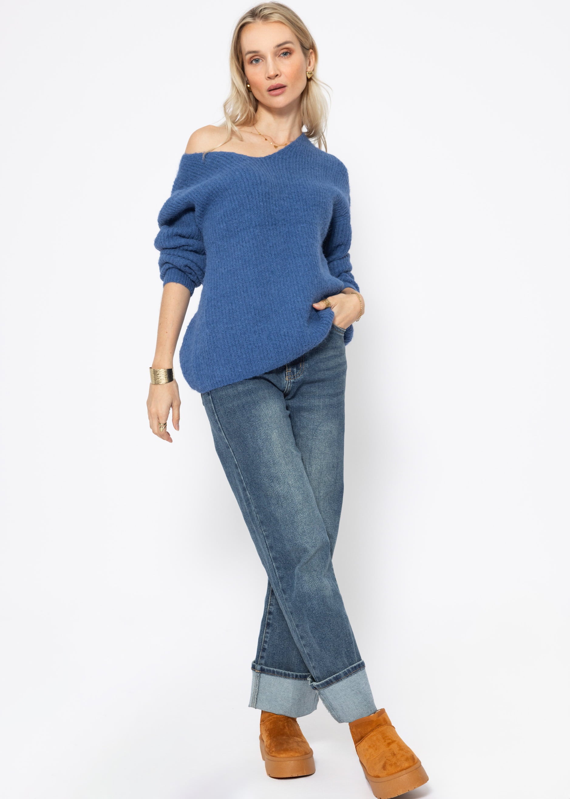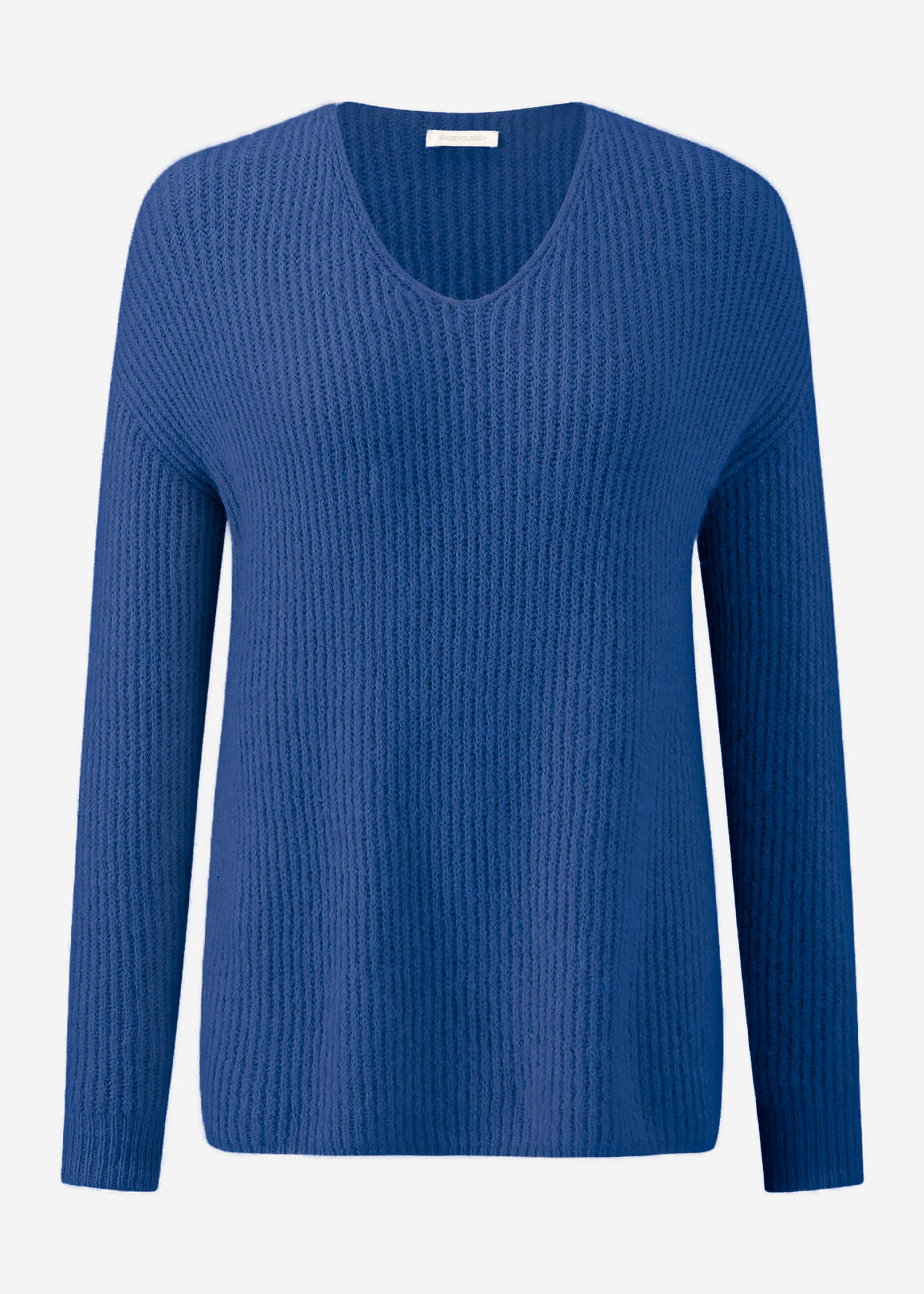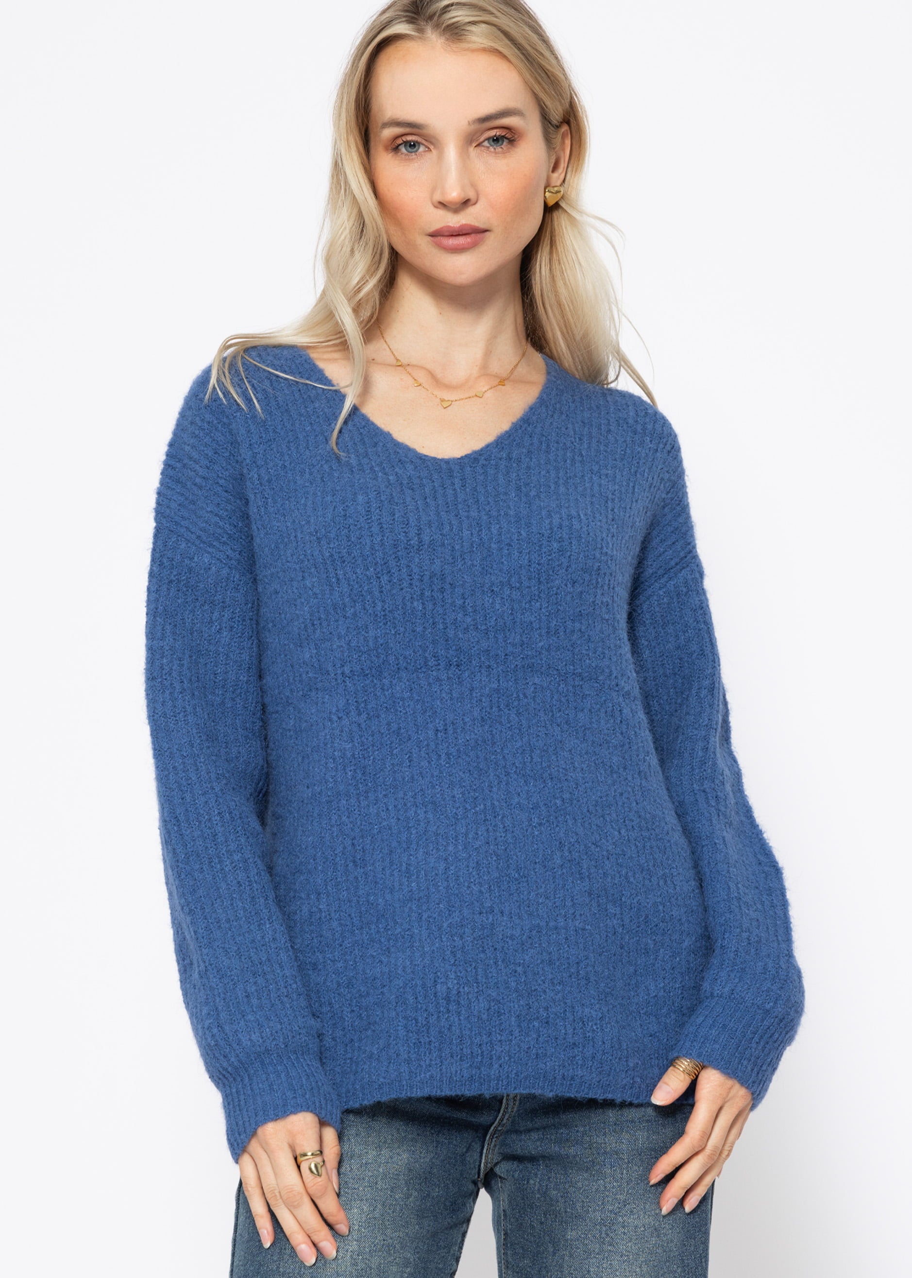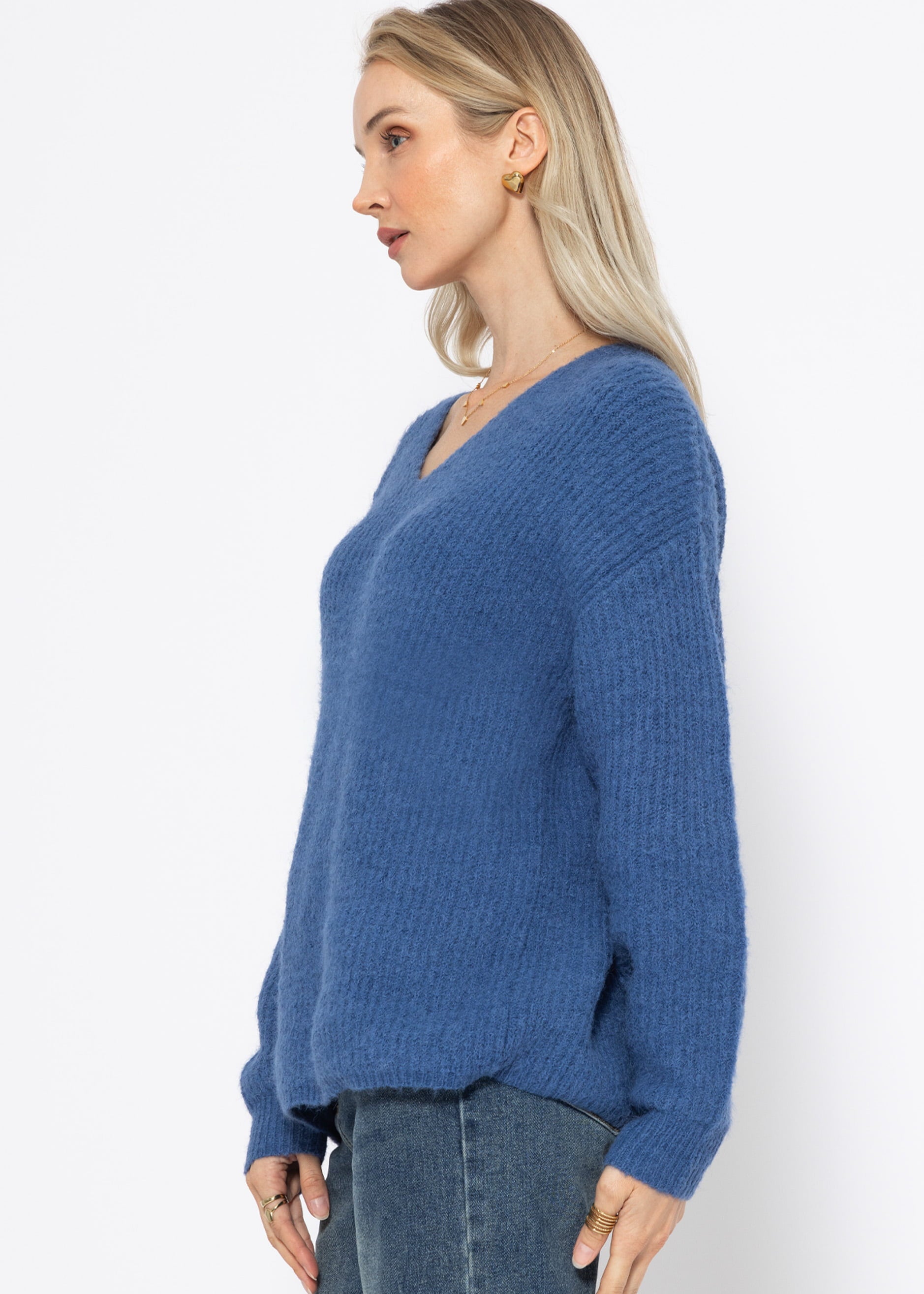 Gerippter Pullover mit V-Ausschnitt - blau
