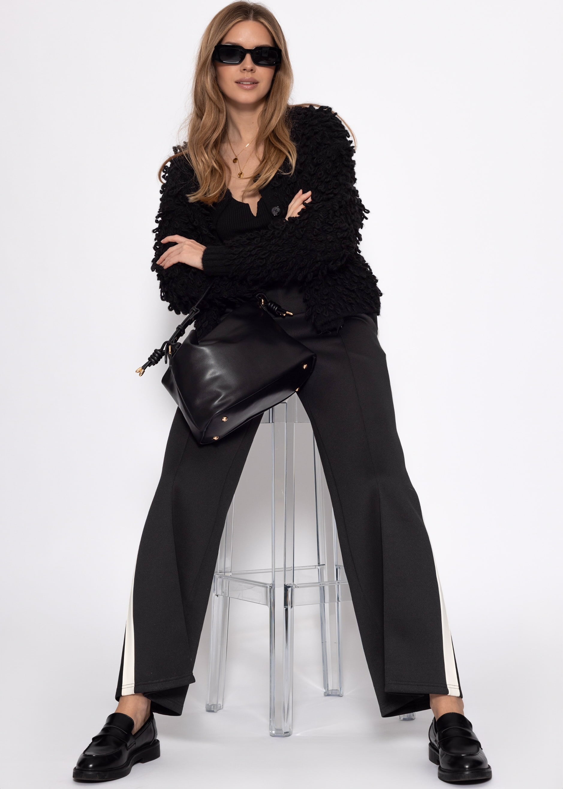 Geripptes Top mit V-Ausschnitt in Schwarz