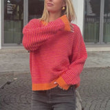 Dieser farbenfrohe Strickpullover in Orange verbindet Komfort und Stil. Er ist aus weichem Strickmaterial gefertigt und bietet ein angenehmes Tragegefühl sowie Wärme.