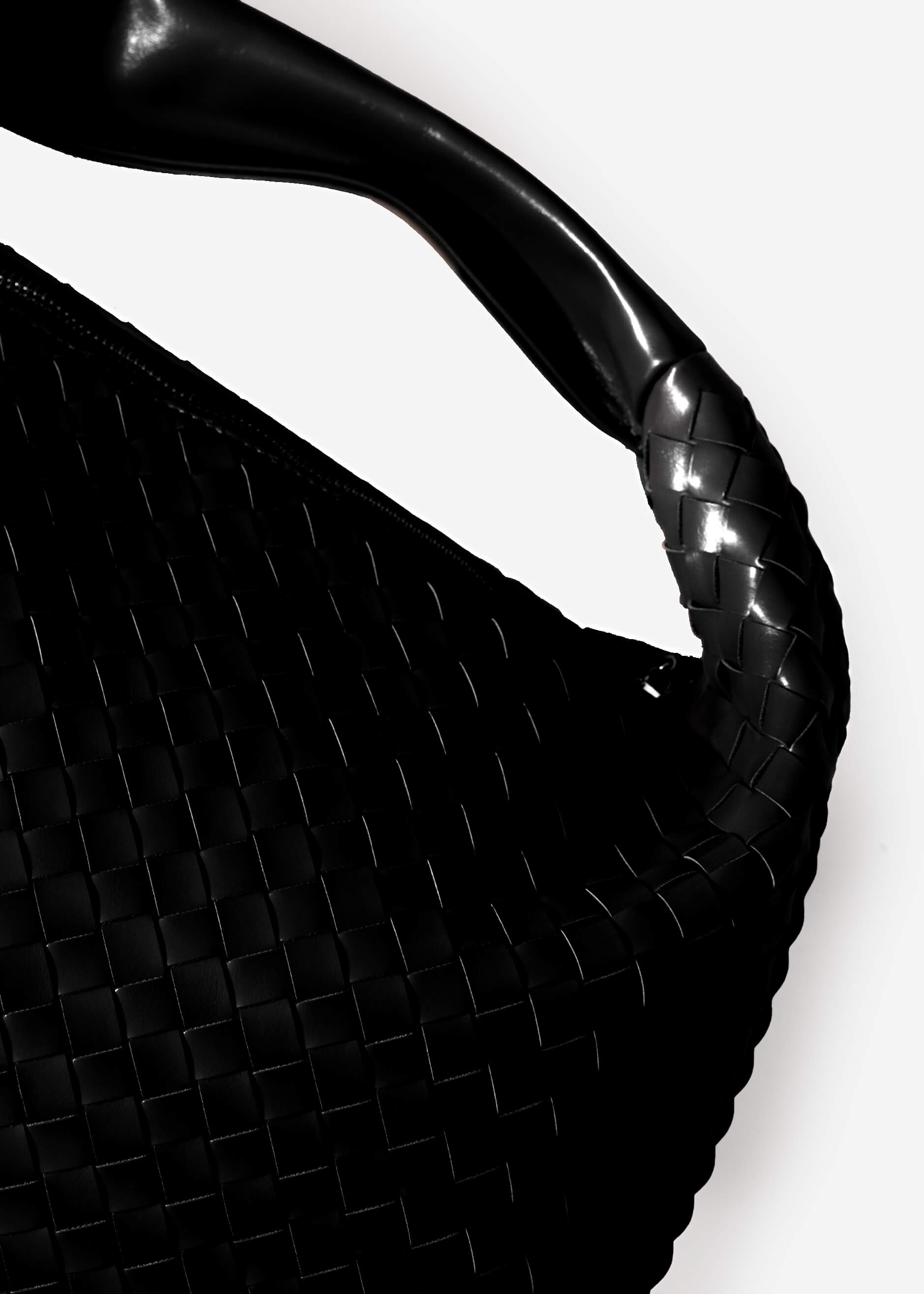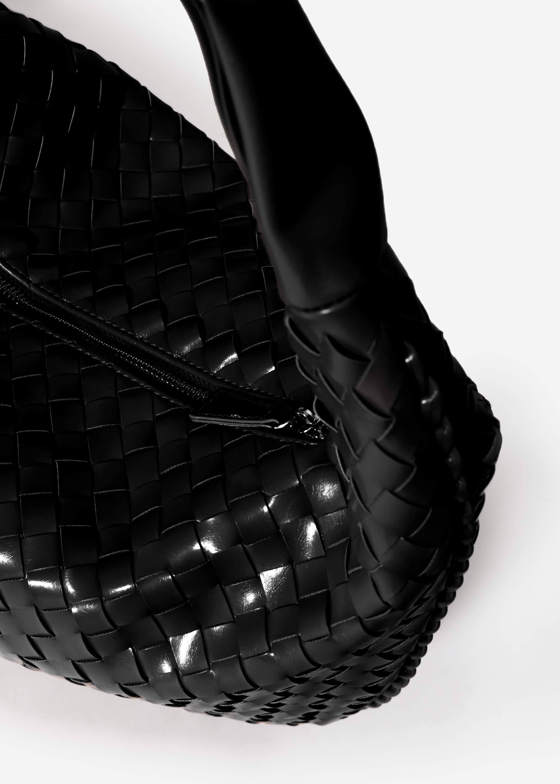 Gewebte Handtasche mit weicher Form und strukturierter Rautenoptik. Dezente goldfarbene Details setzen elegante Akzente. Vielseitig kombinierbar für Alltag und Abendlooks.