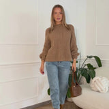 Dieser Grobstrickpullover aus einer Wollmischung bietet gemütliche Wärme und ein modernes Design. Die Strickstruktur und das Rückendetail mit Bindeschleife verleihen ihm eine lässige und feminine Note.
