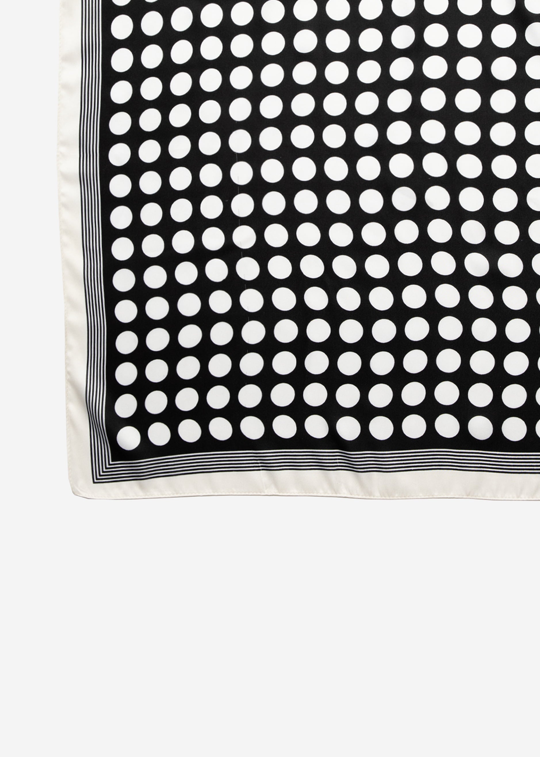 Dieses luxuriöse Halstuch bringt Eleganz in deinen Kleiderschrank. Das angesagte Polka Dot Muster verleiht jedem Outfit eine trendige Note, während das leichte, fließende Material für ein angenehmes Tragegefühl sorgt. Ob lässig um den Hals geschlungen, als modisches Haarband getragen oder dekorativ an der Handtasche befestigt - dieses Tuch ist der perfekte Begleiter für jede Gelegenheit.